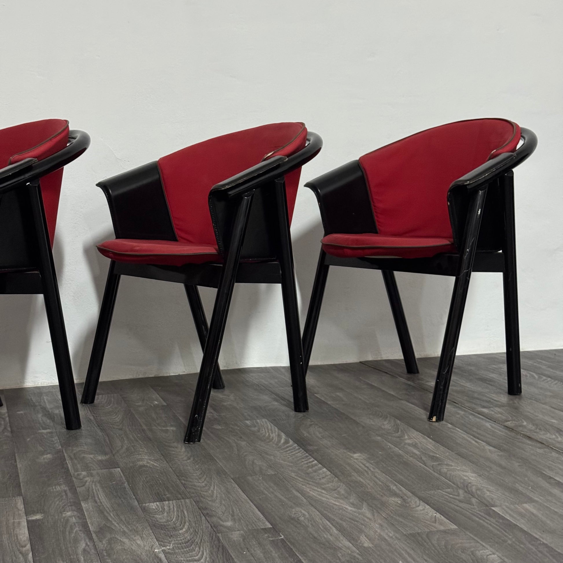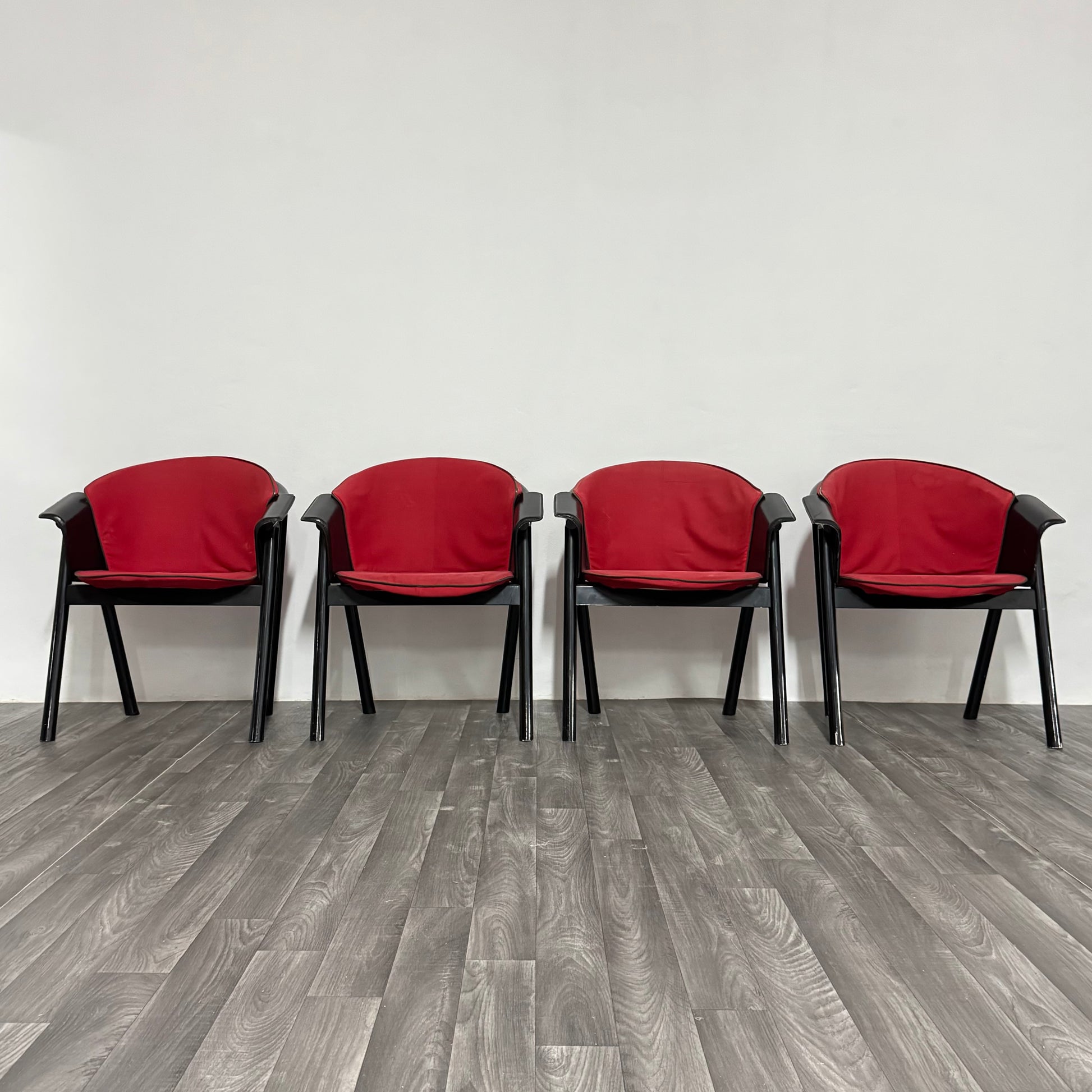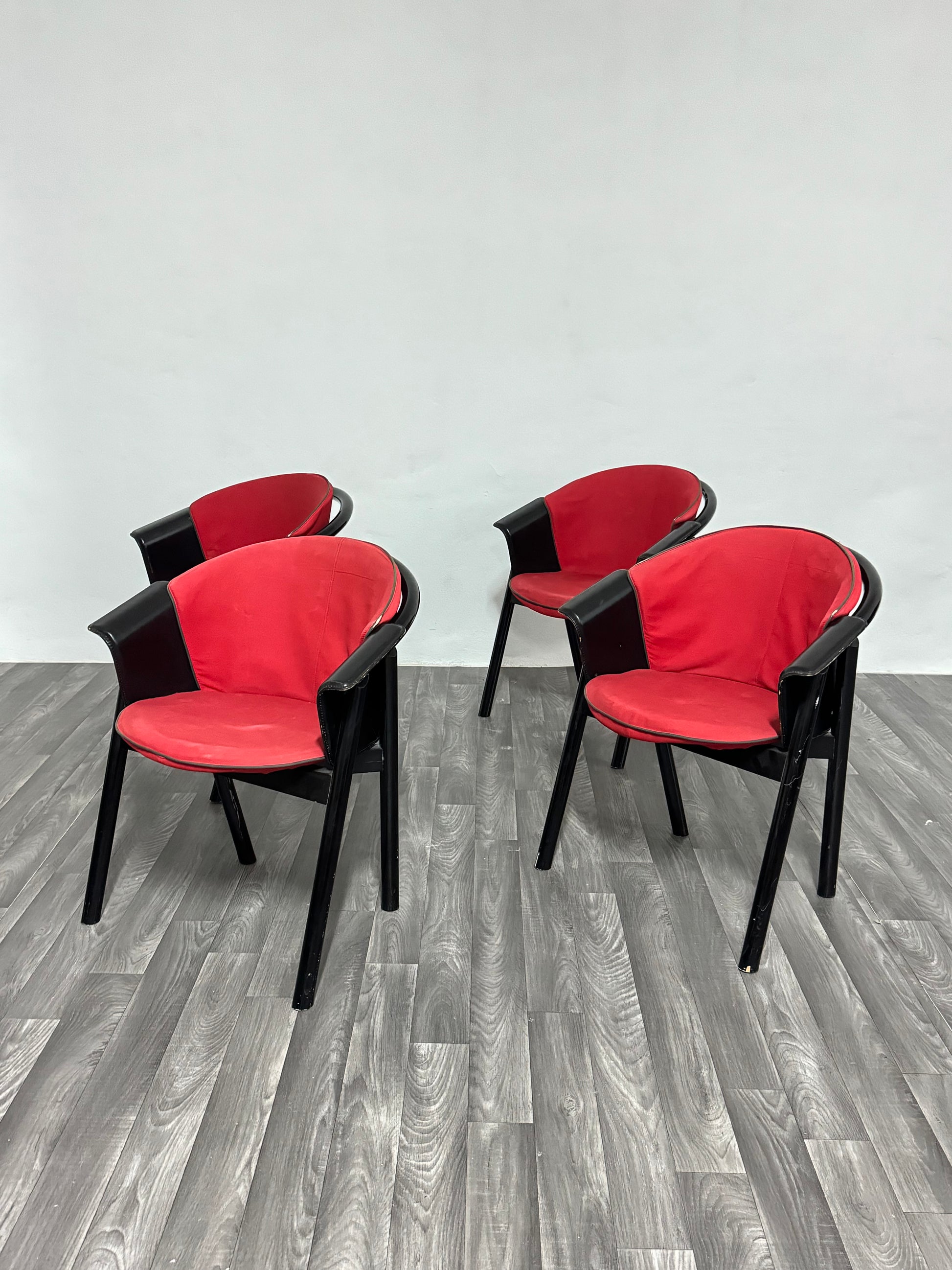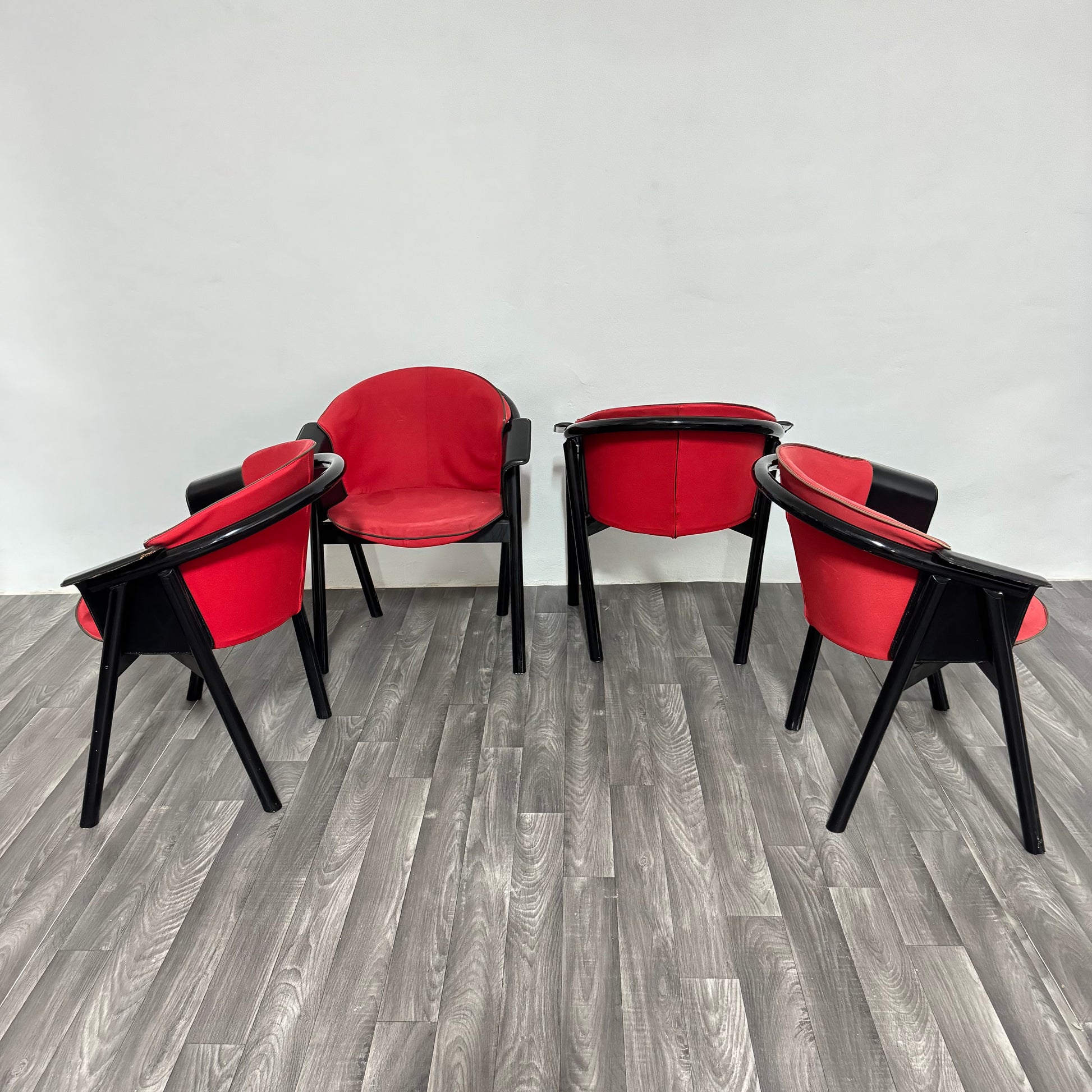 4 sedie Pozzi & Verga in legno laccato e Tessuto Anni ‘70