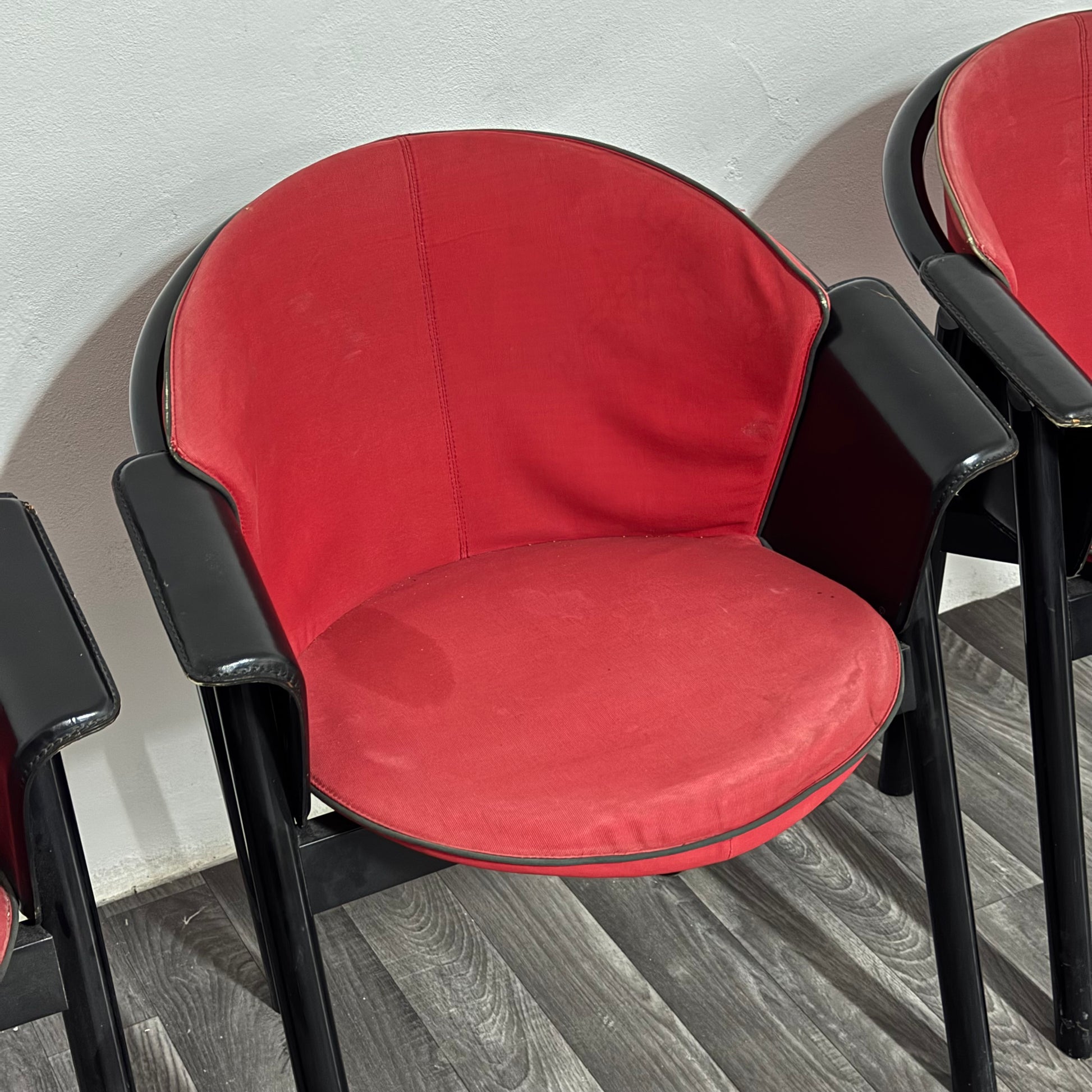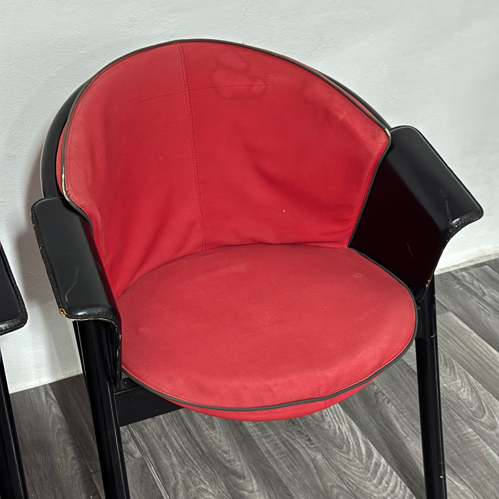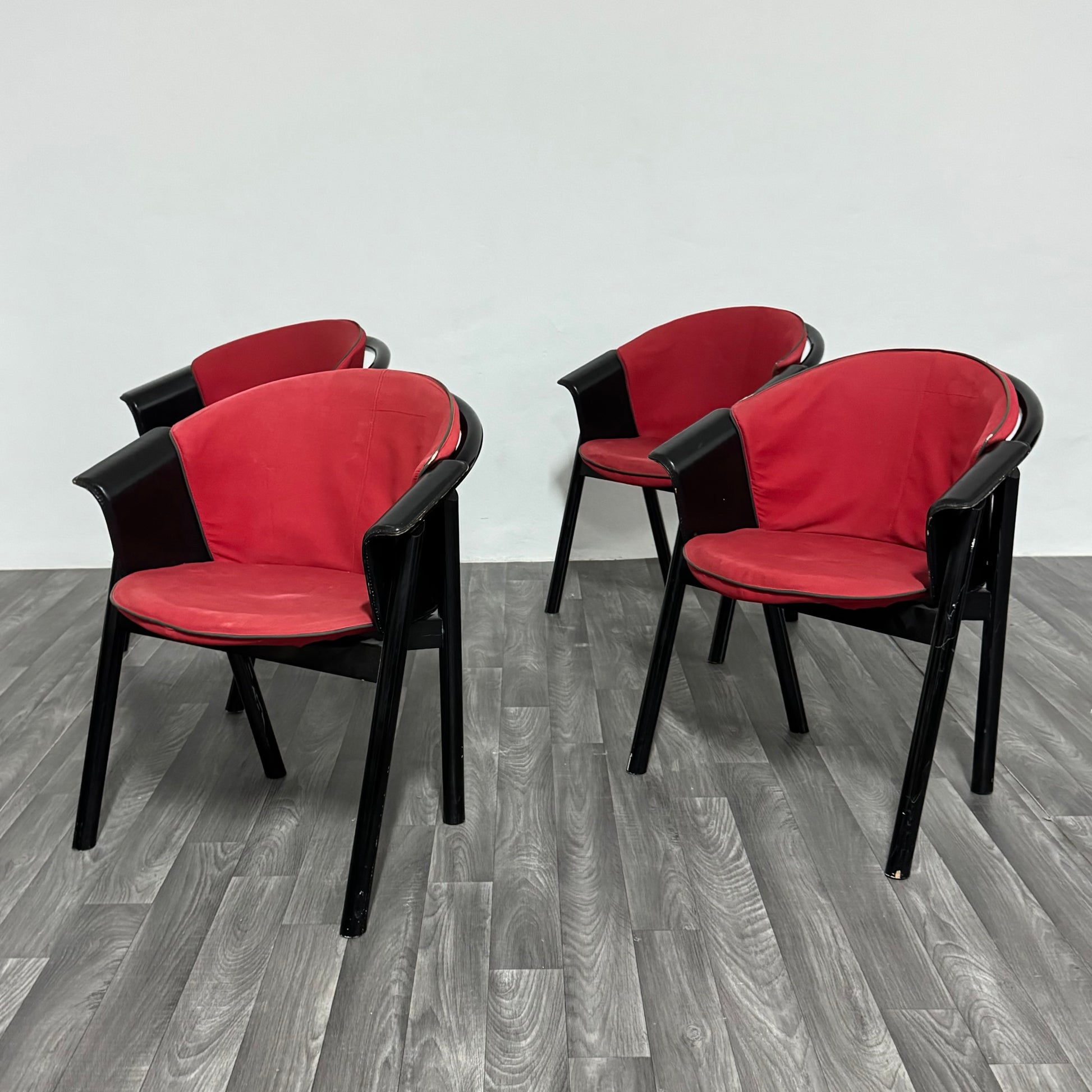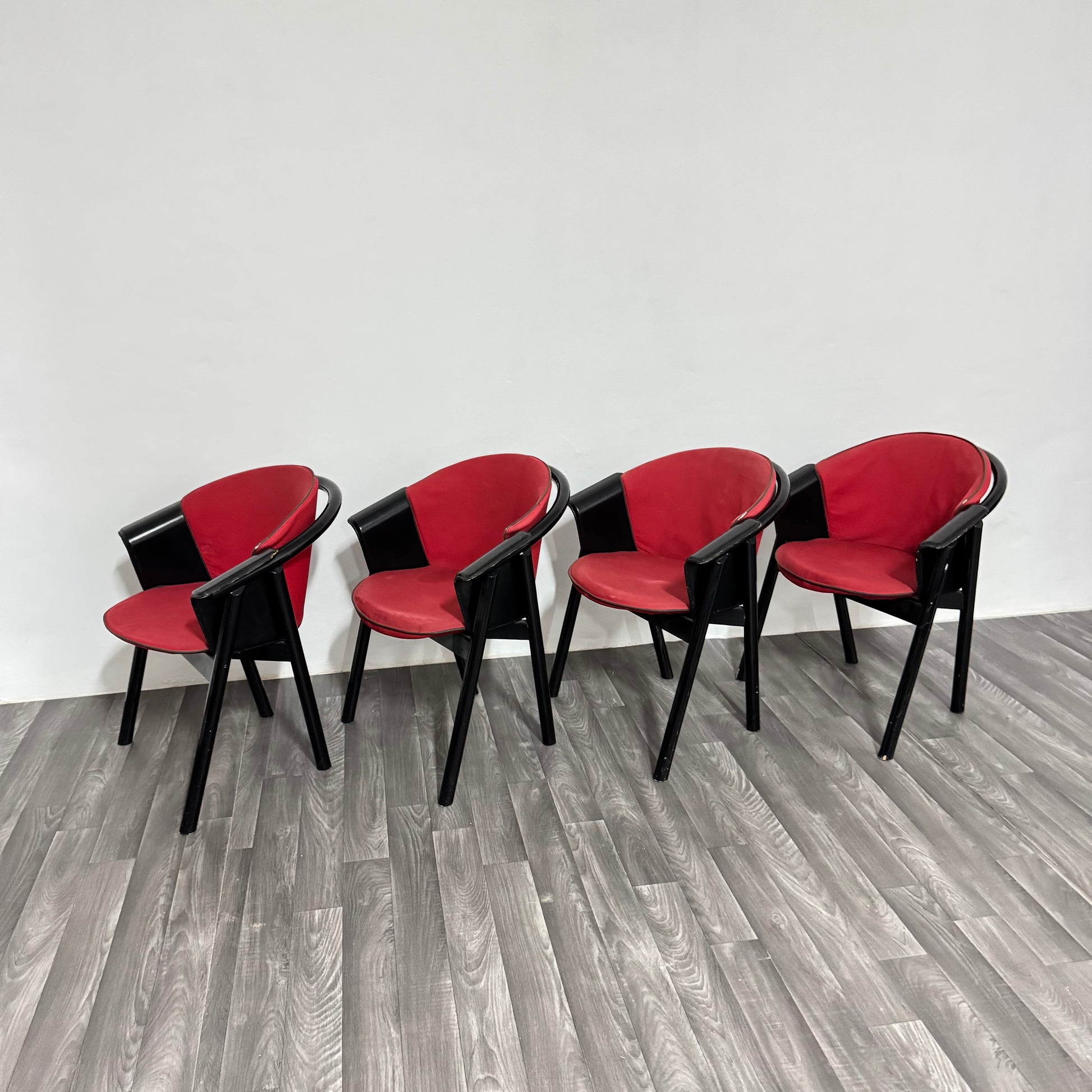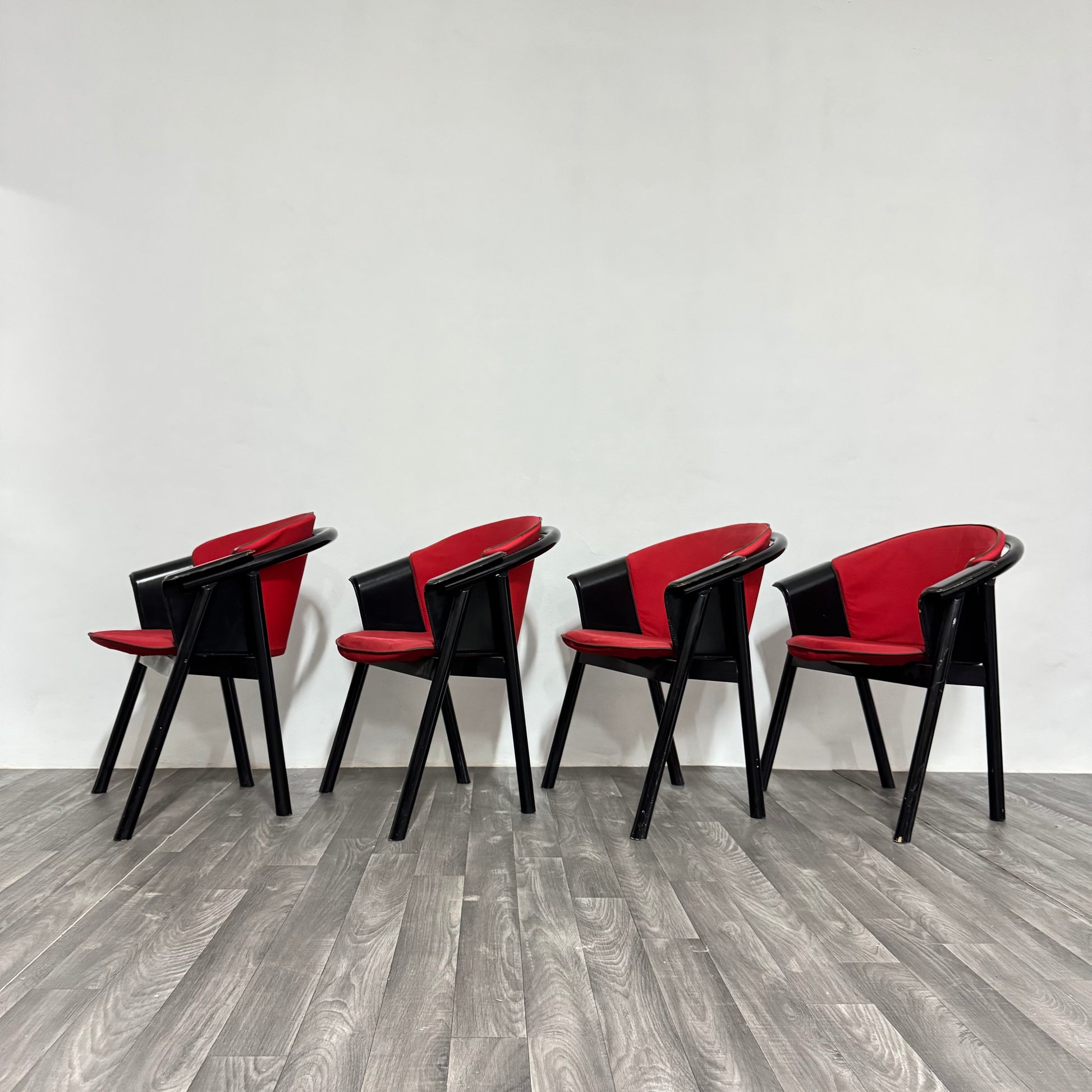 4 sedie Pozzi & Verga in legno laccato e Tessuto Anni ‘70