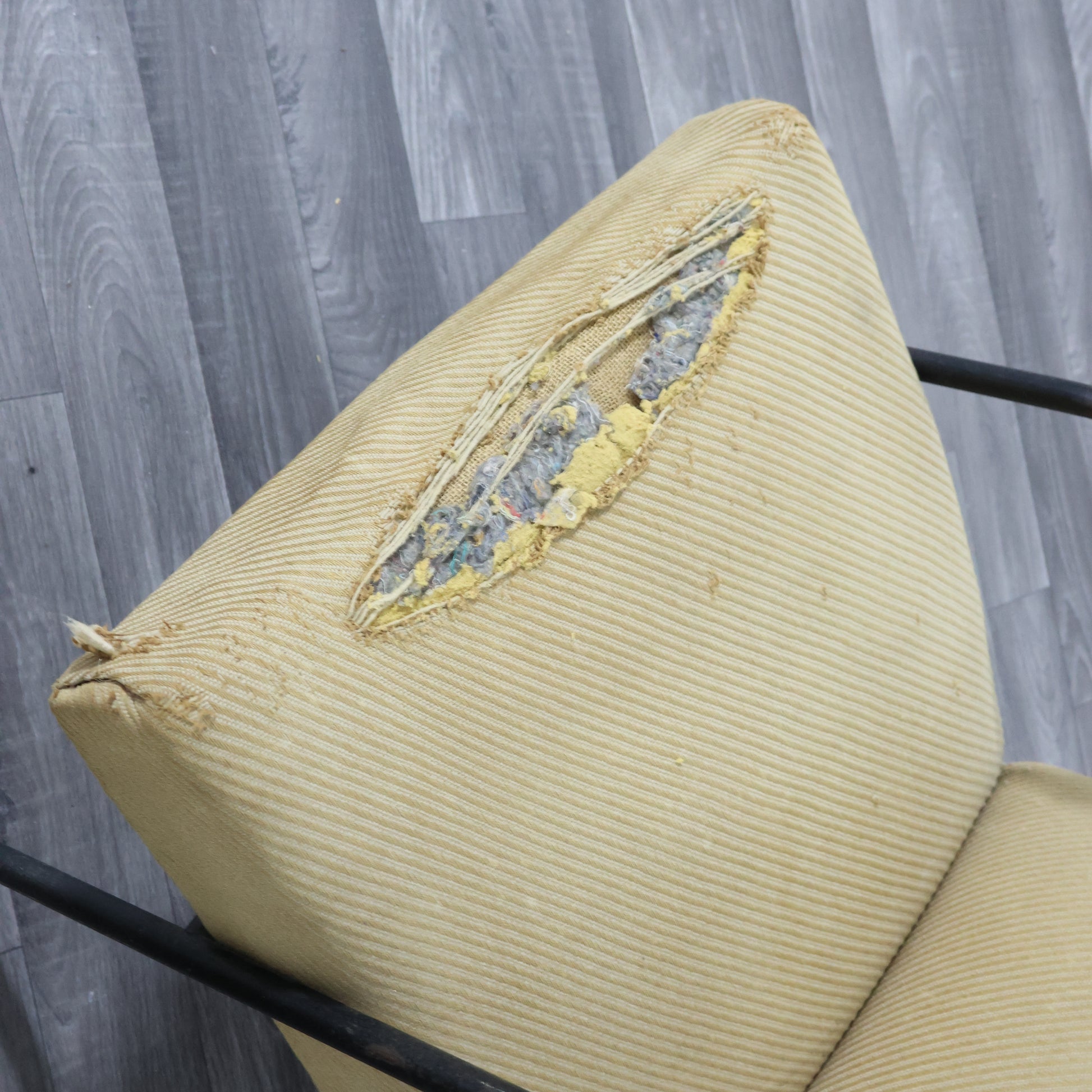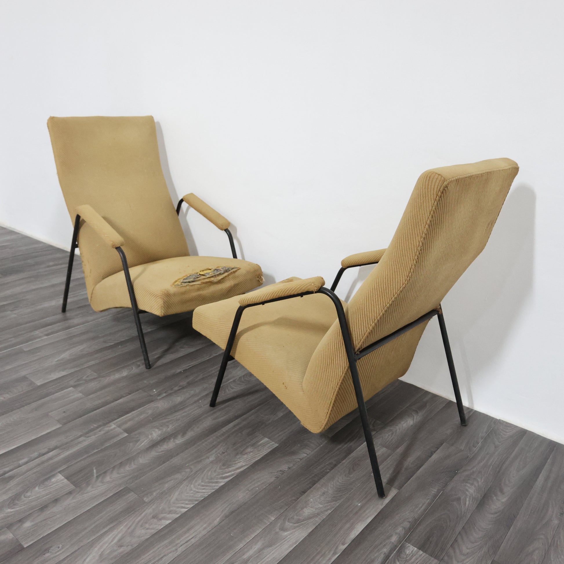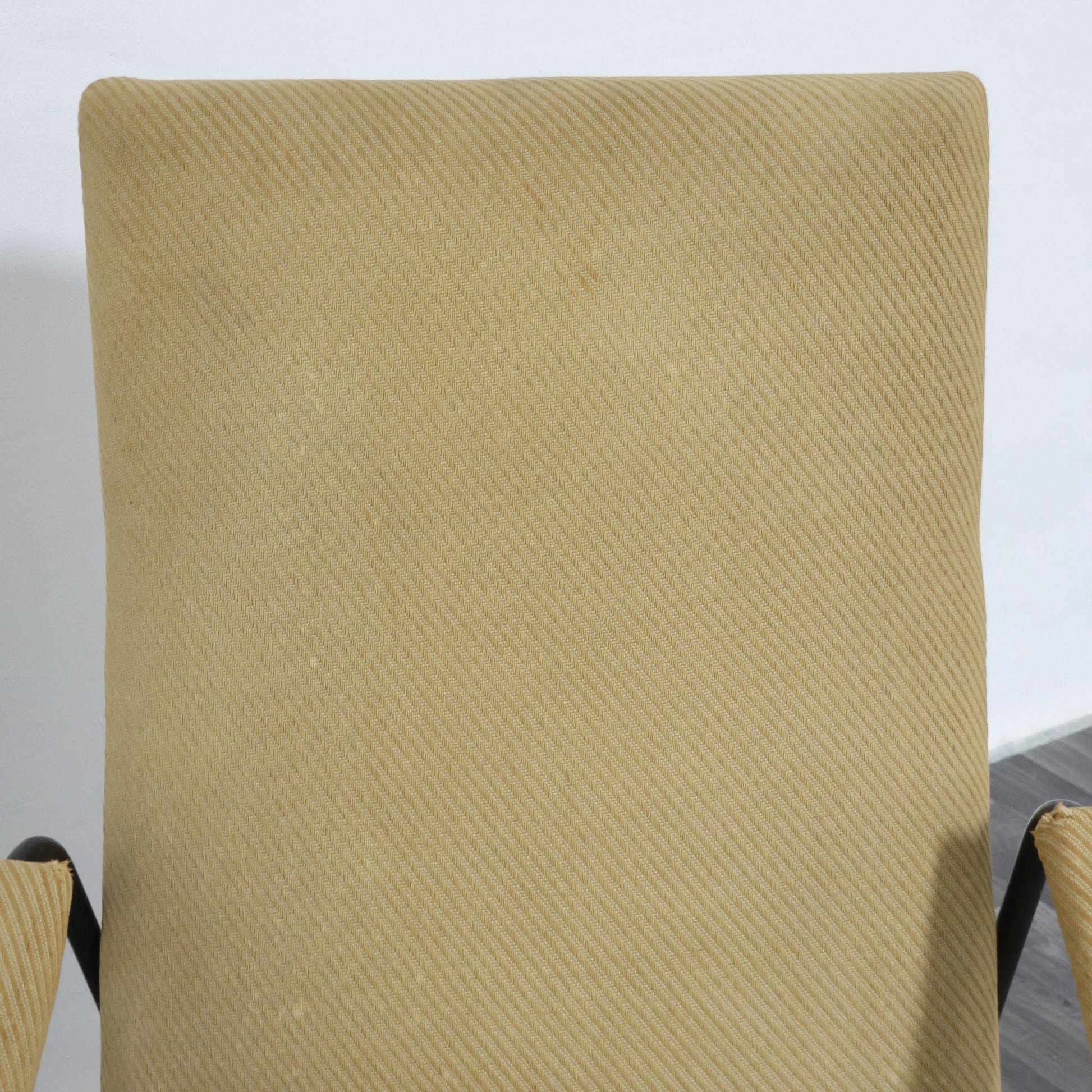 Struttura in metallo verniciato di colore nero, rivestimento in tessuto originale dell’epoca da restaurare.
