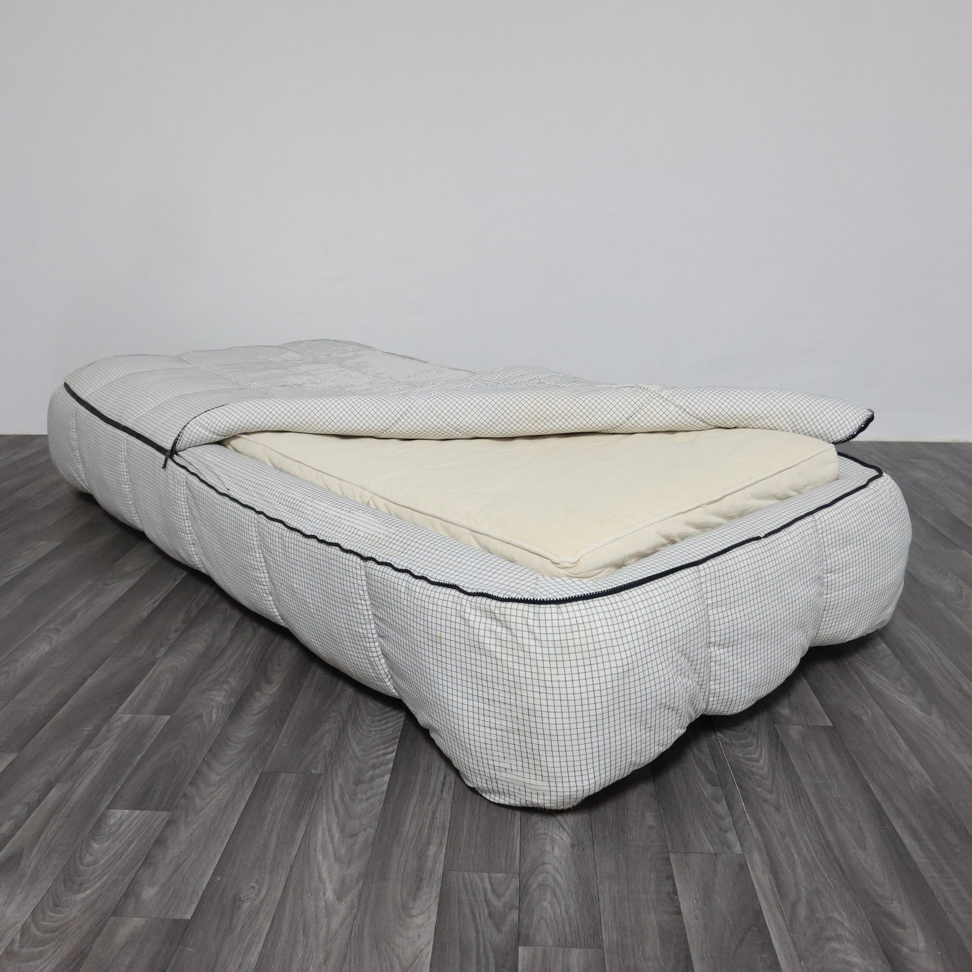 Iconico letto singolo della serie Strips, disegnata da Cini Boeri per Arflex nel 1972, vincitrice del Compasso d’Oro.