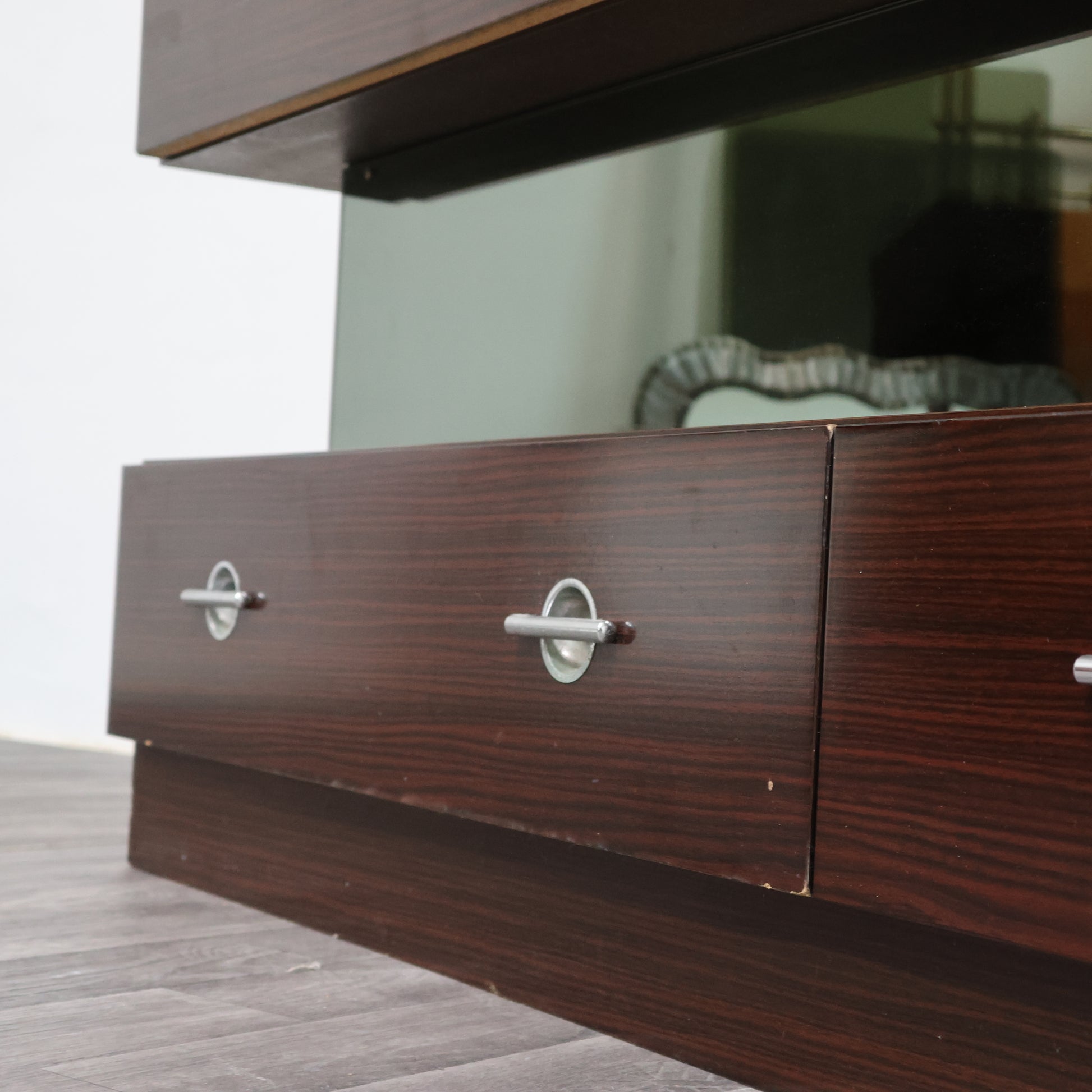 Comò Cassettiera In Ebano Macassar E Specchio Cubic Design Modernariato 1980’s.