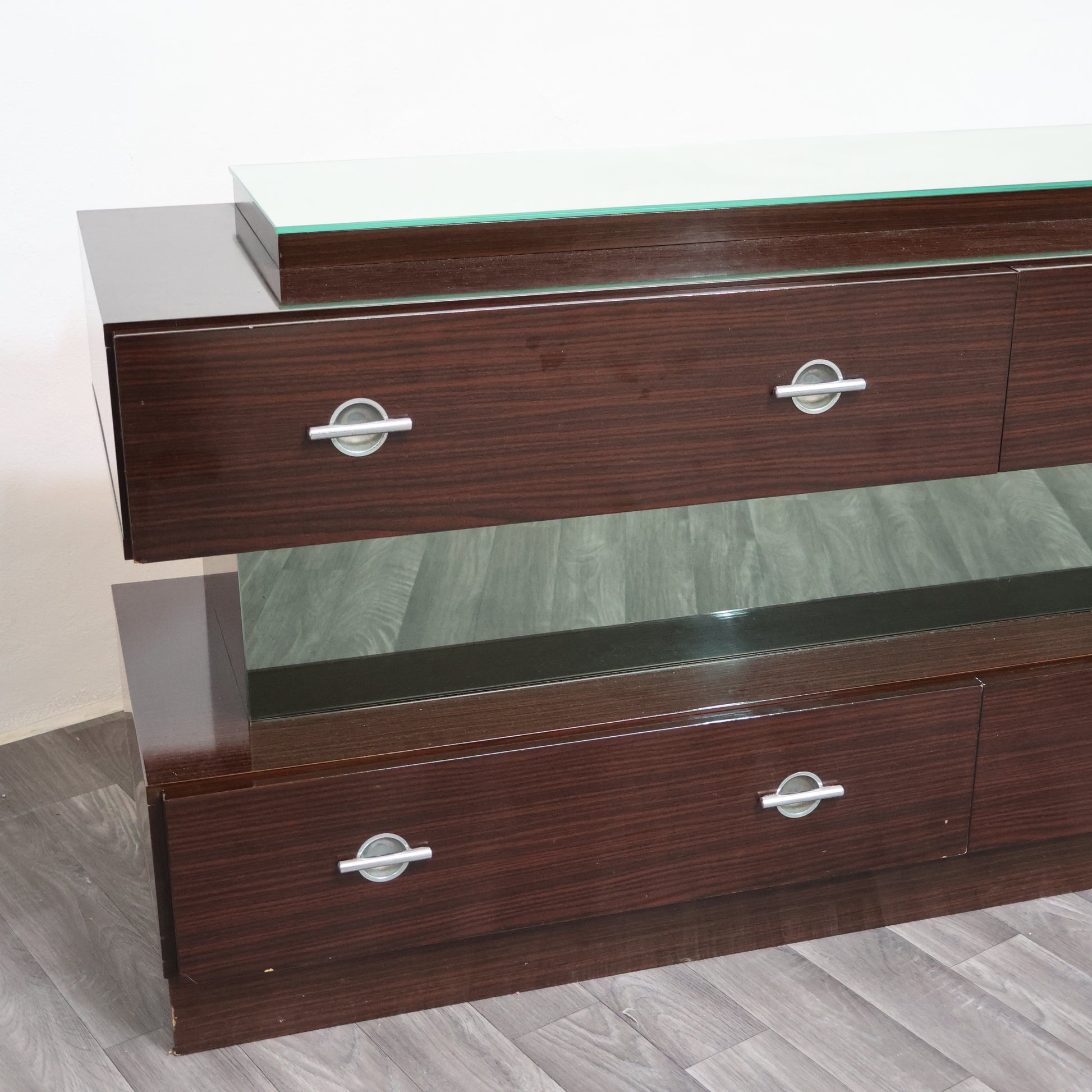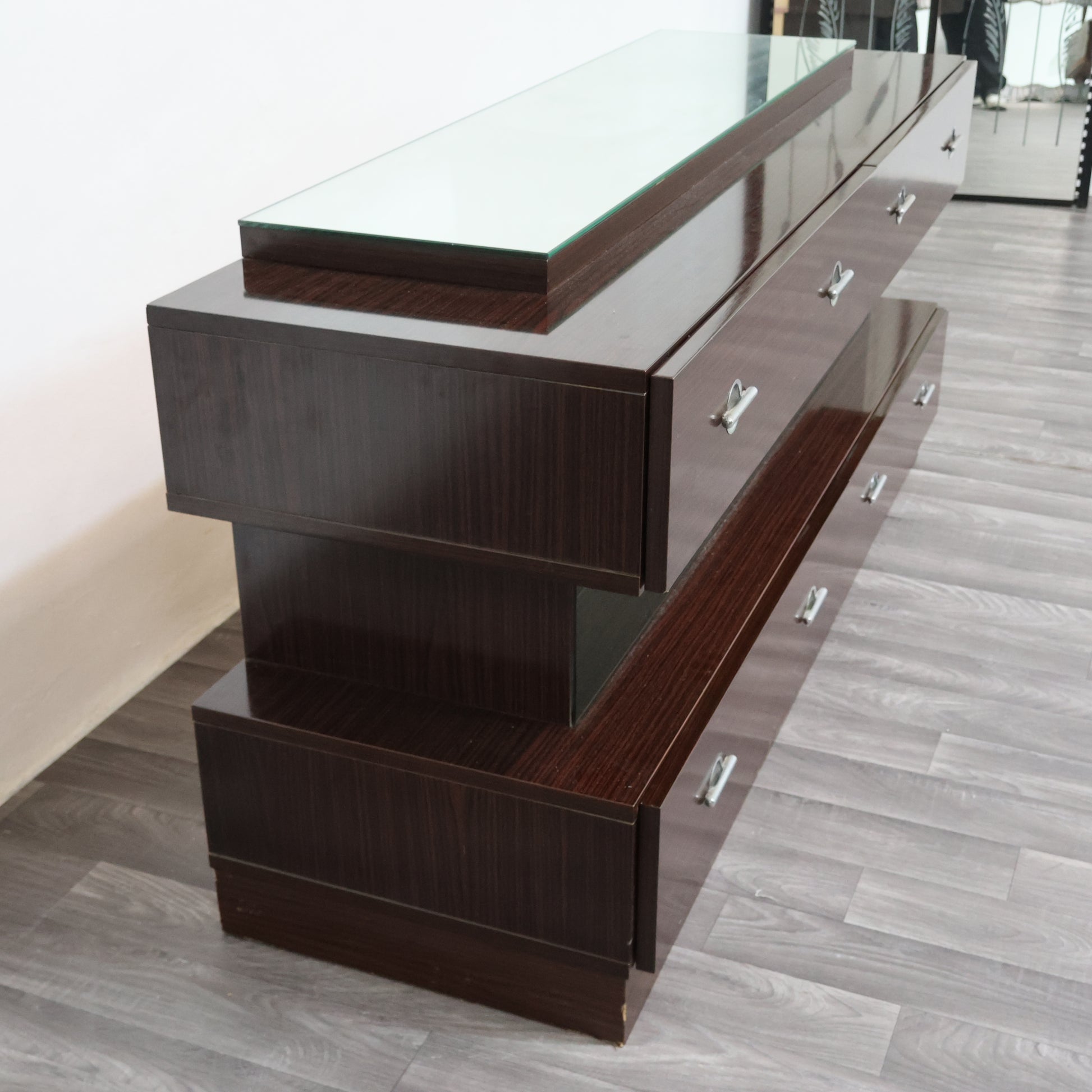 Comò Cassettiera In Ebano Macassar E Specchio Cubic Design Modernariato 1980’s