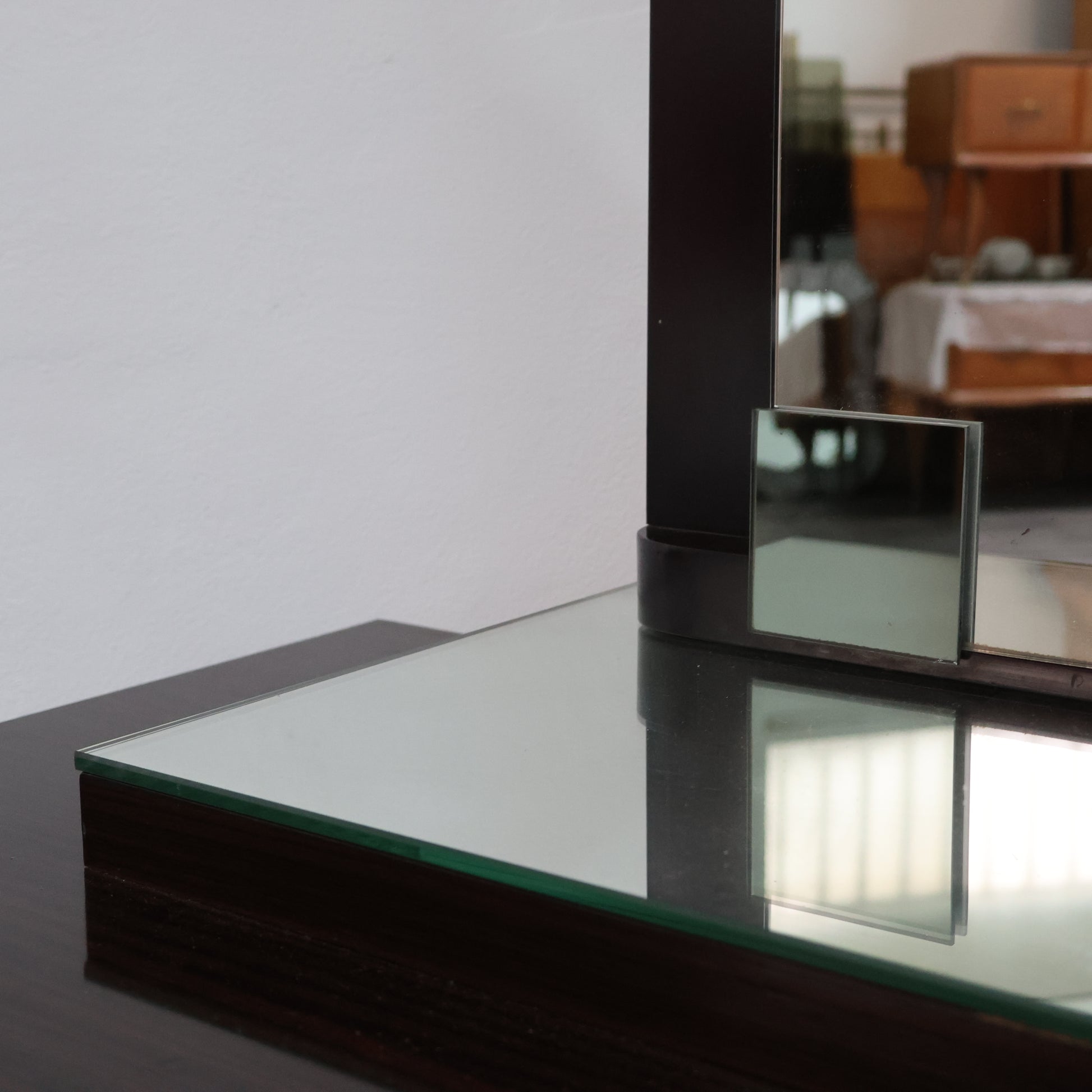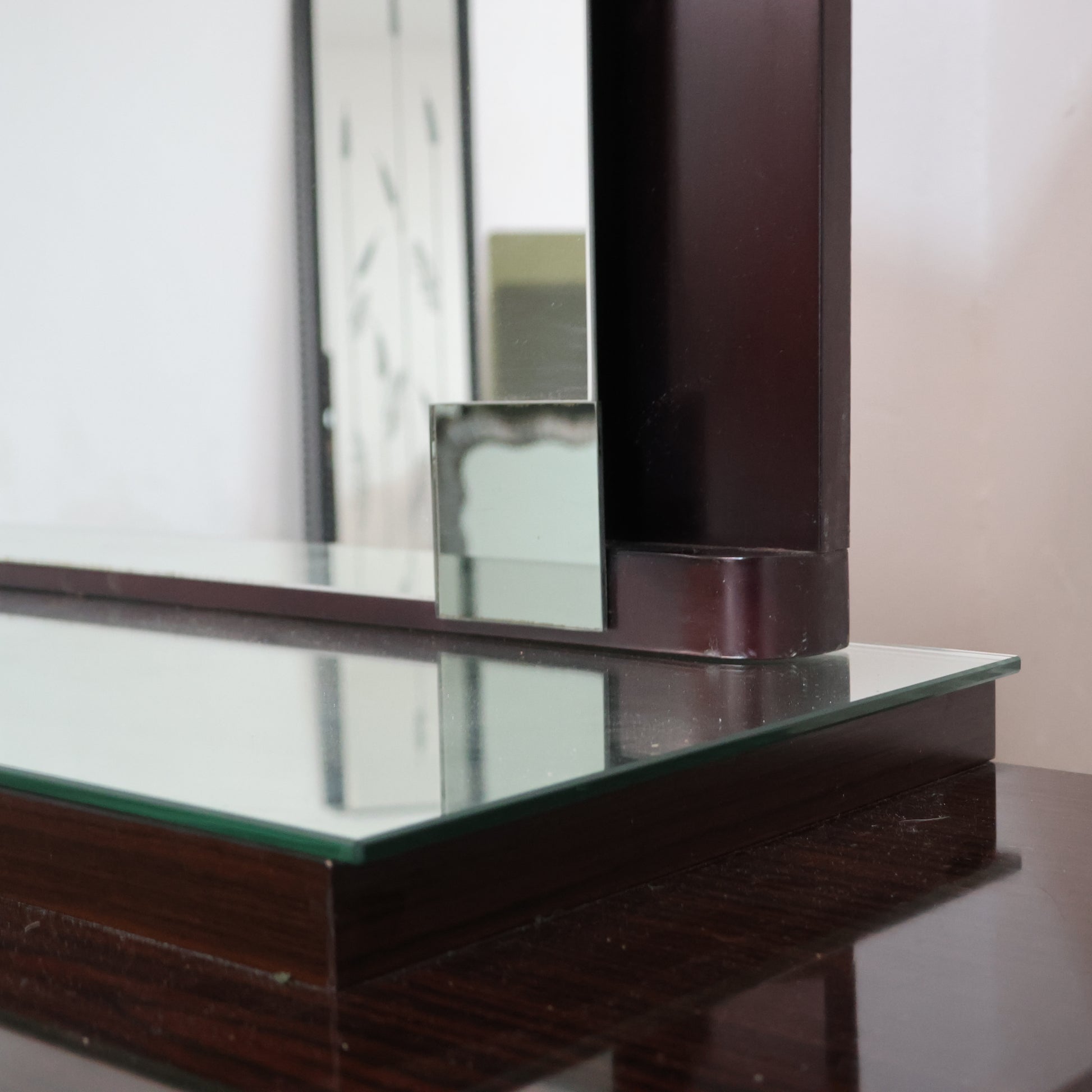 Comò Cassettiera con specchio In Ebano Macassar E Specchio Cubic Design Modernariato 1980’s.