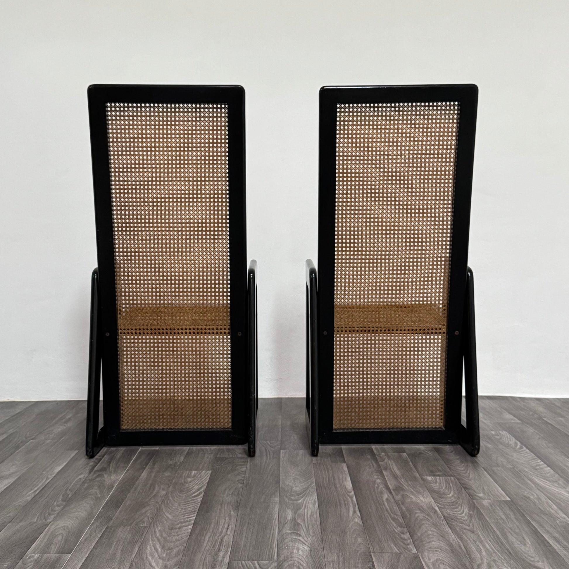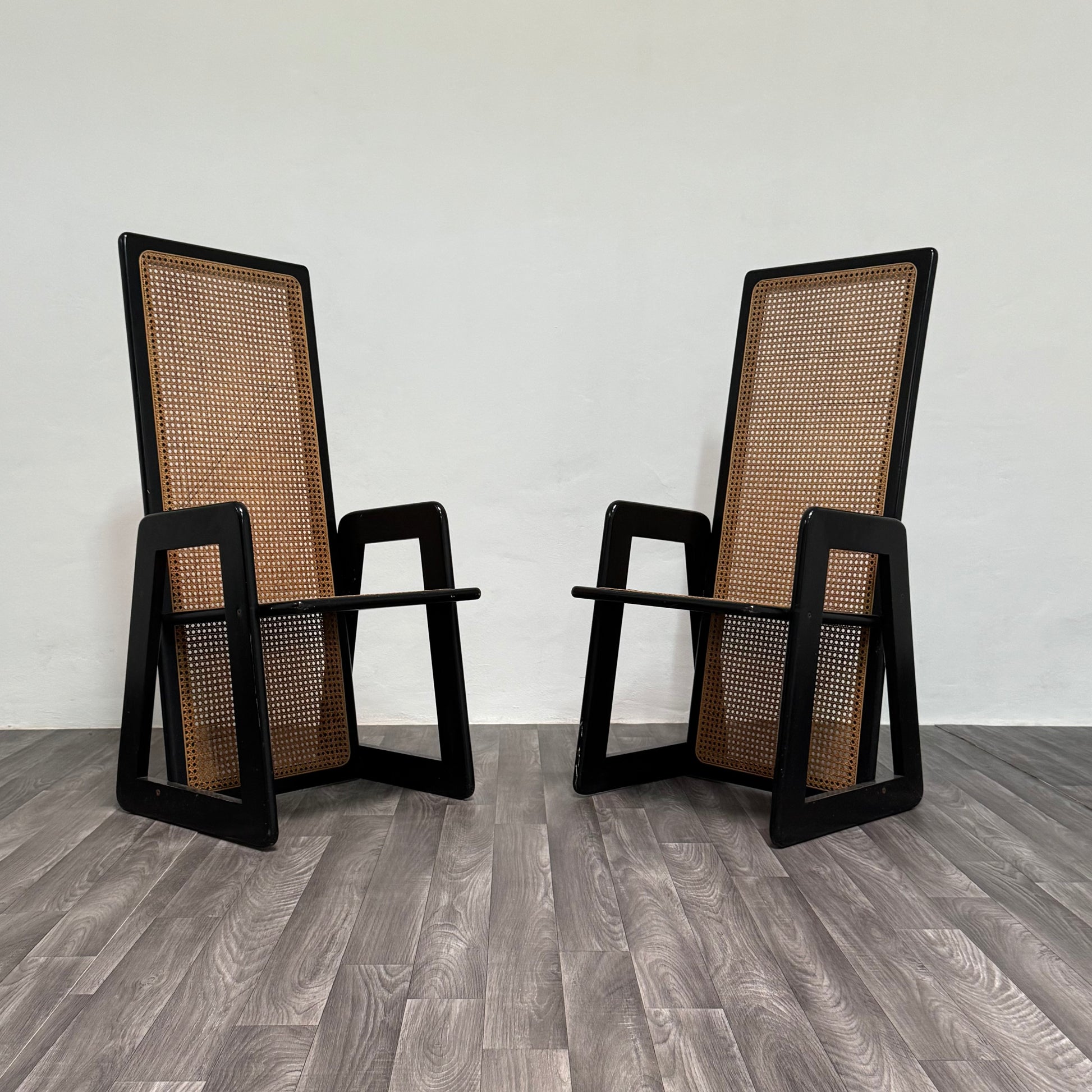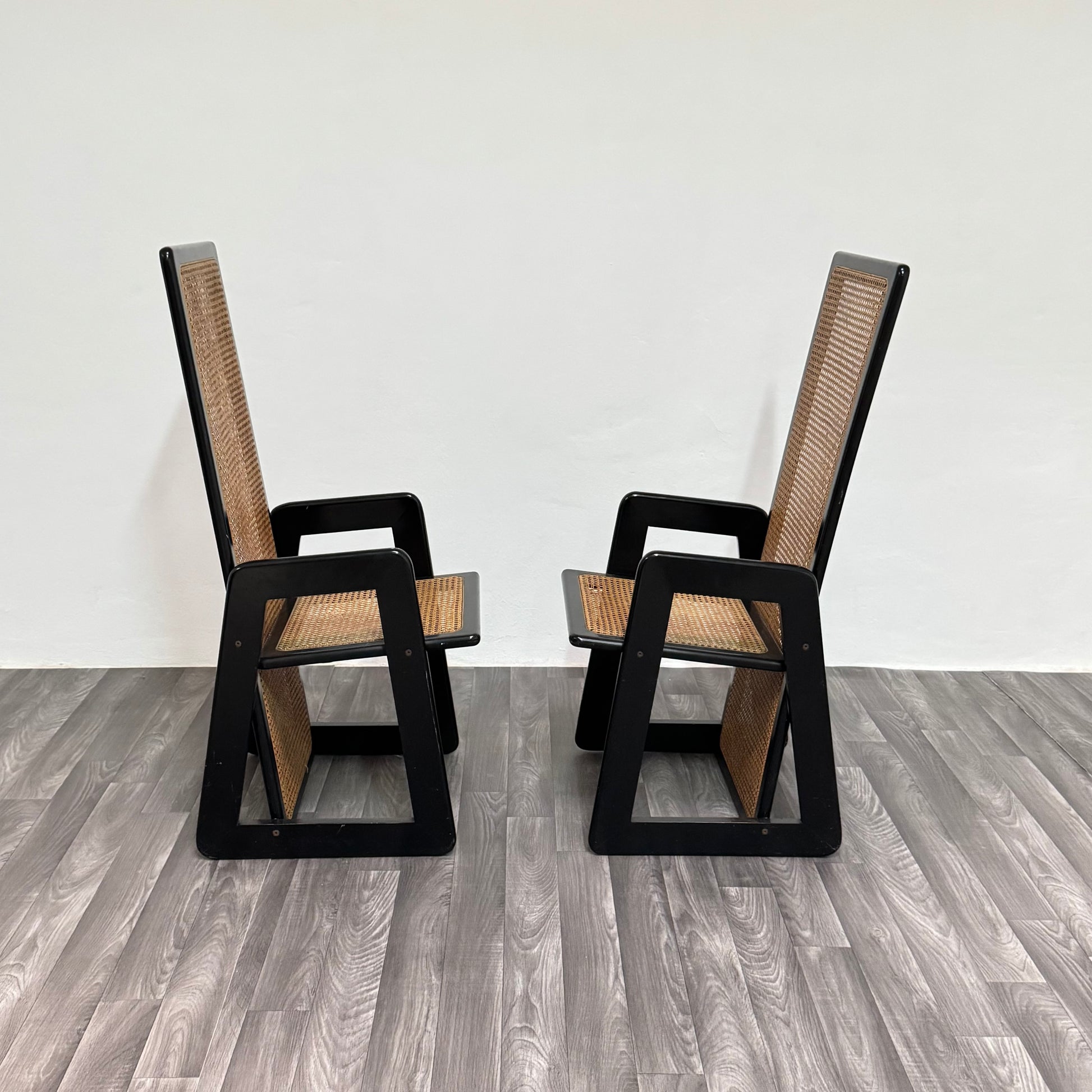 Coppia Di Sedie Design Schienale Alto Legno Laccato Paglia Di Vienna Anni ‘70