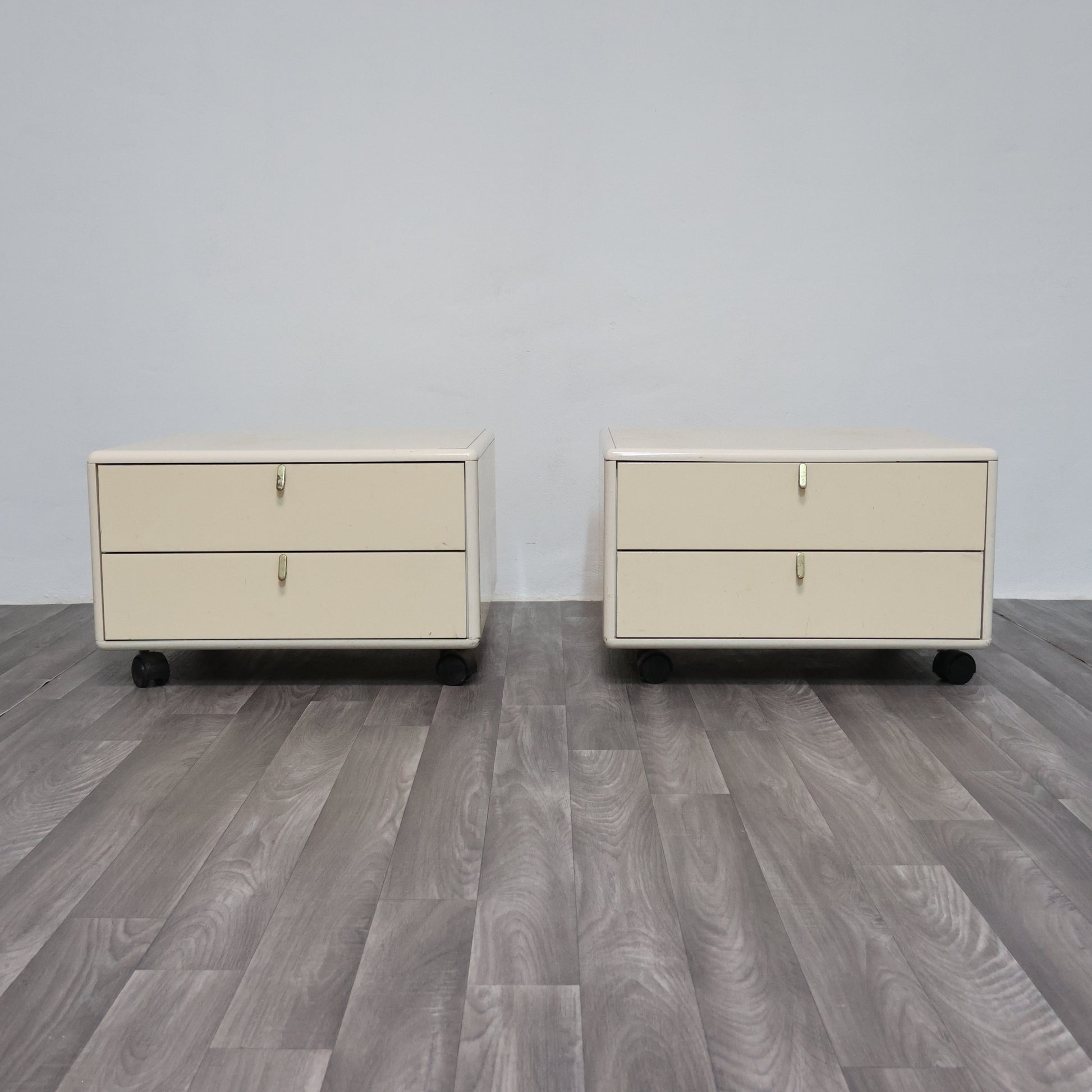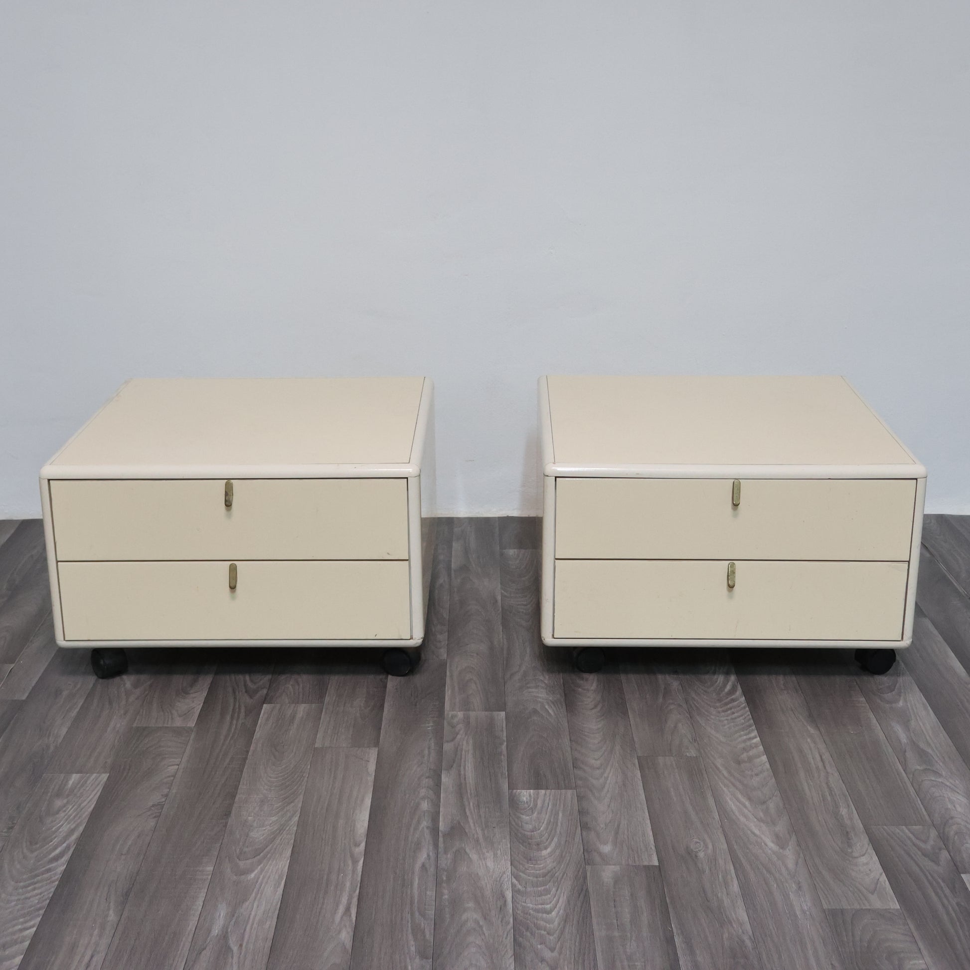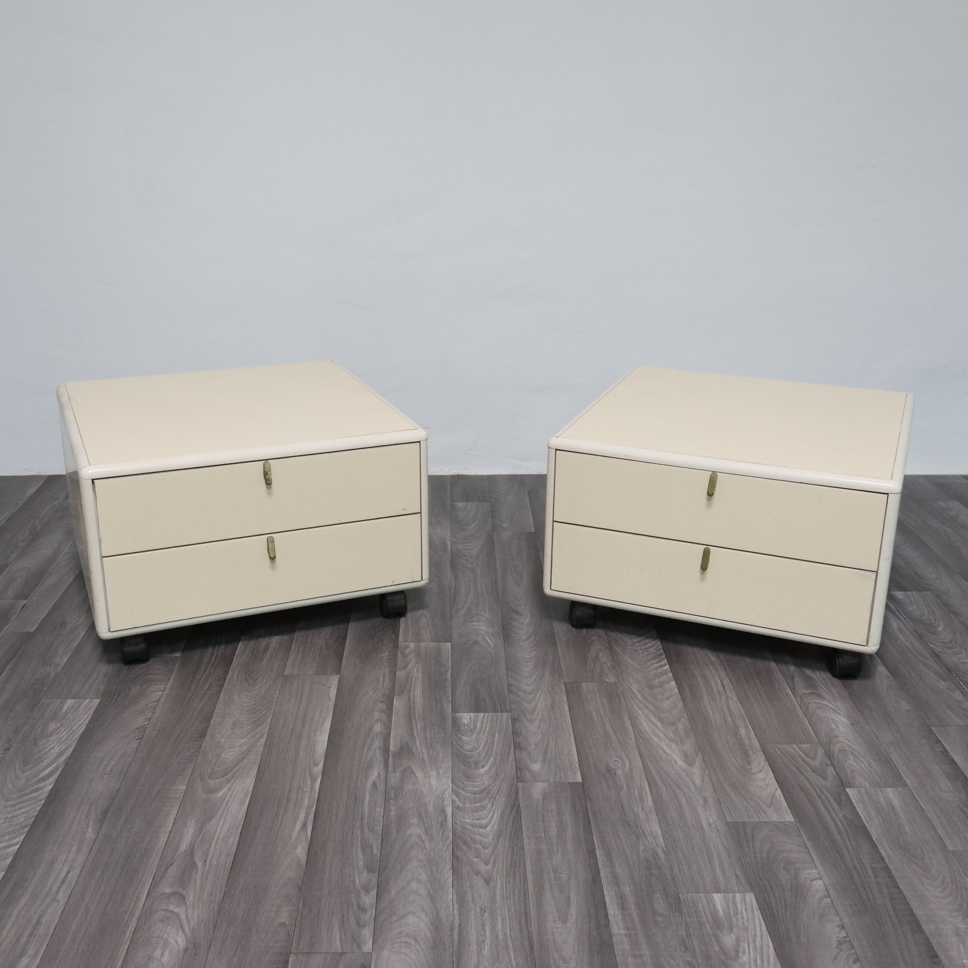 Eccezionale coppia di comodini della prestigiosa serie "Hennè", ideata dall'acclamato designer George Coslin e prodotta da Longato negli anni '70 in Italia.