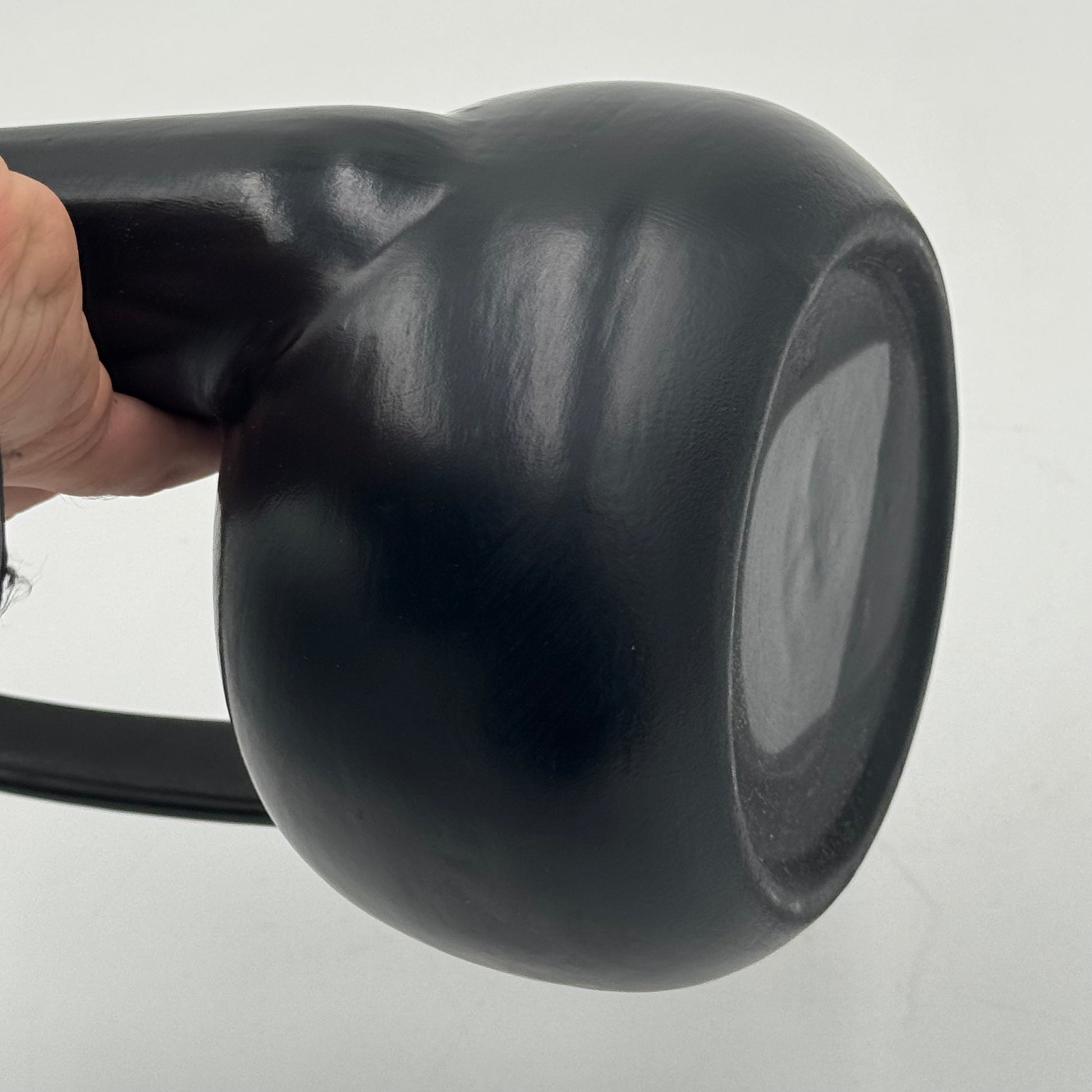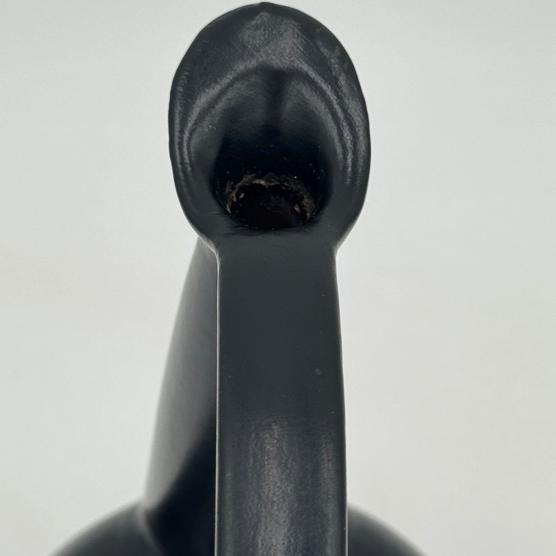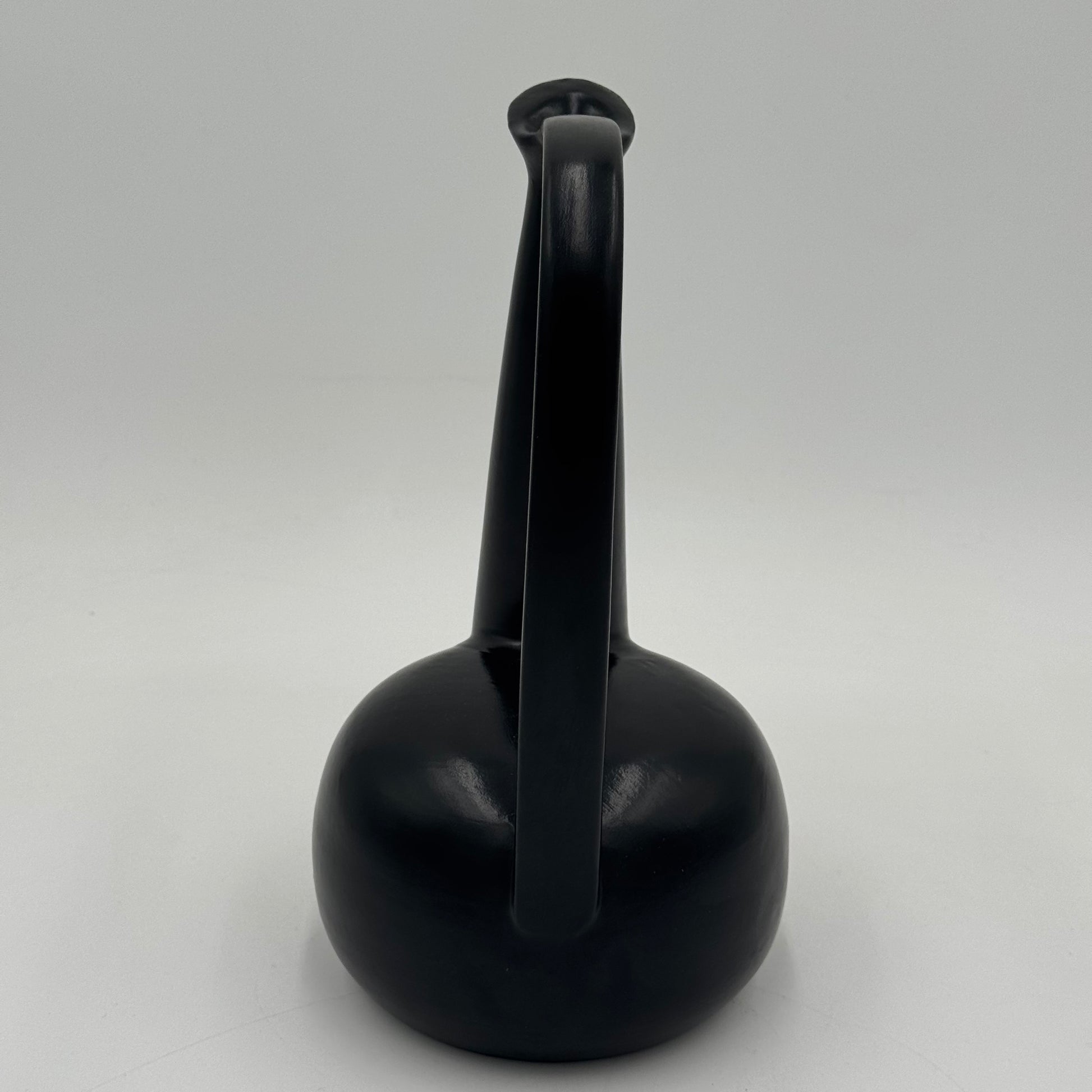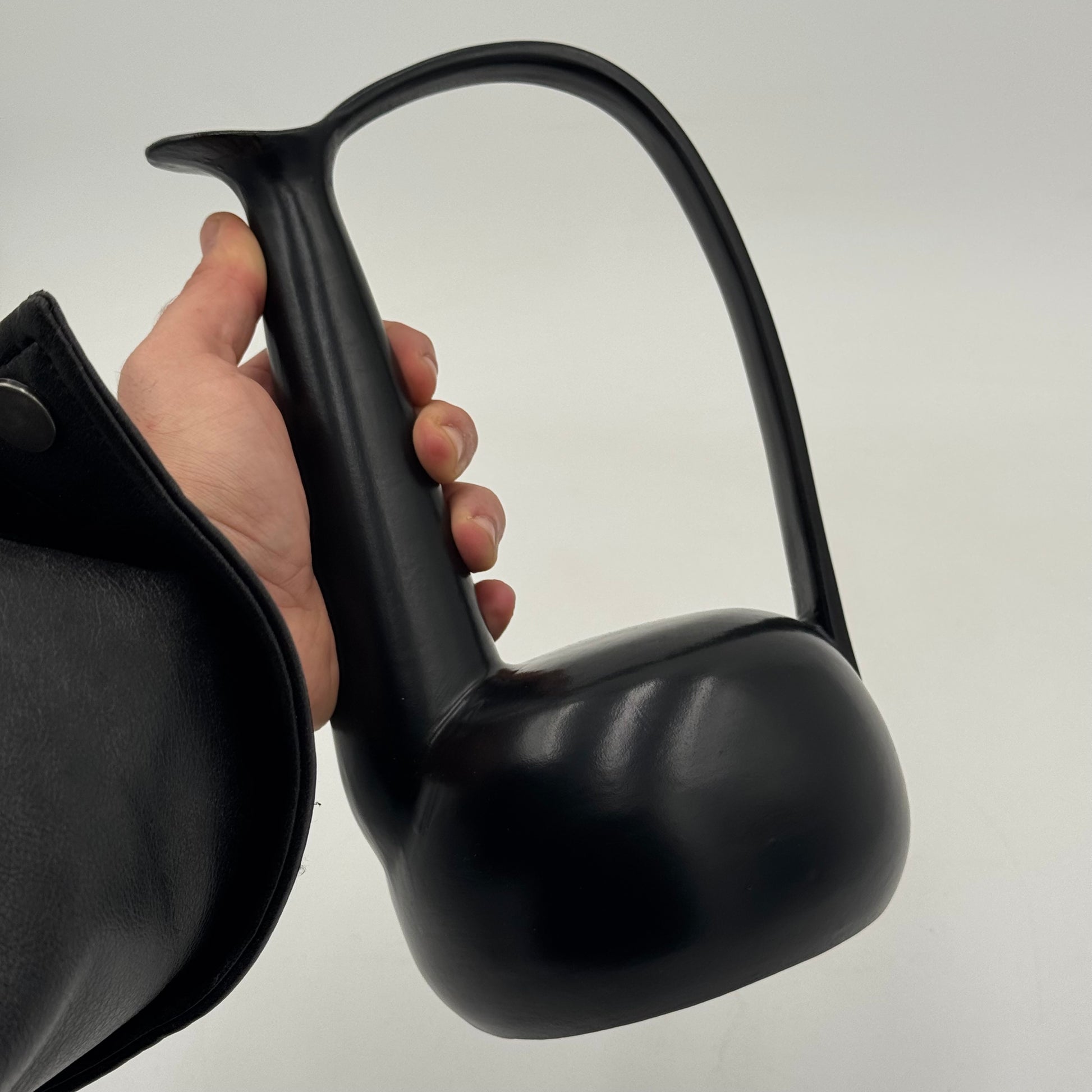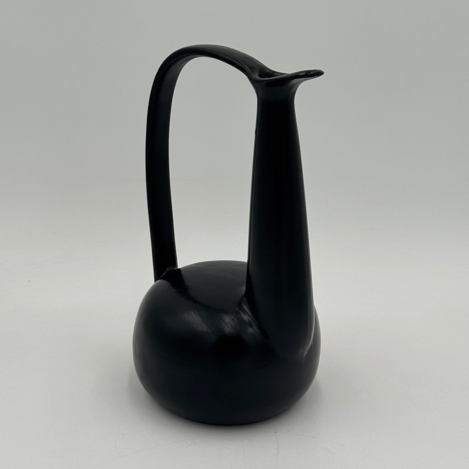 Raro vaso in ceramica nera bucchero, disegnato da Gio Ponti in collaborazione con Carlo Alberto Rossi negli anni Quaranta. L’opera si distingue per la sua linea scultorea e dinamica, con un manico ad arco pronunciato e un corpo levigato dalle superfici sinuose, tipiche della ricerca formale pontiana di quegli anni.