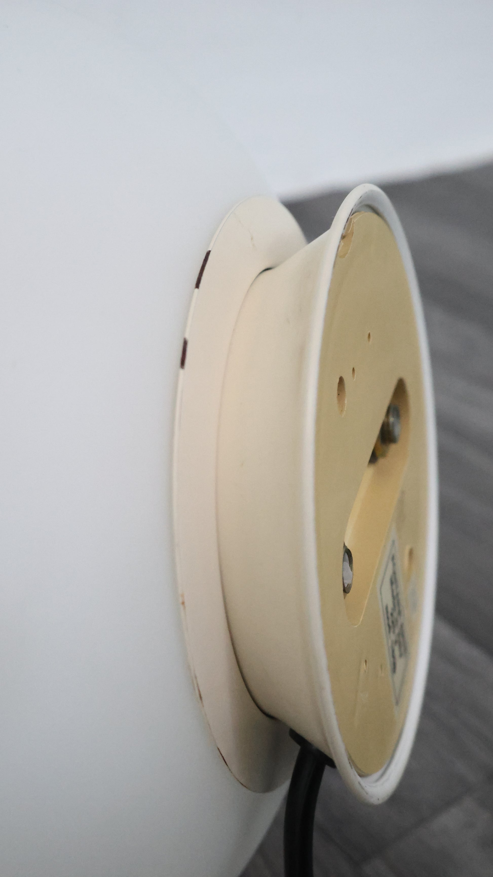 La struttura presenta una base cilindrica in vetro satinato con diffusore superiore emisferico, entrambi in vetro bianco opalino, che diffondono una luce calda e avvolgente, ideale sia per l’illuminazione diretta che soffusa. I dettagli in metallo cromato ne esaltano il carattere raffinato e senza tempo.