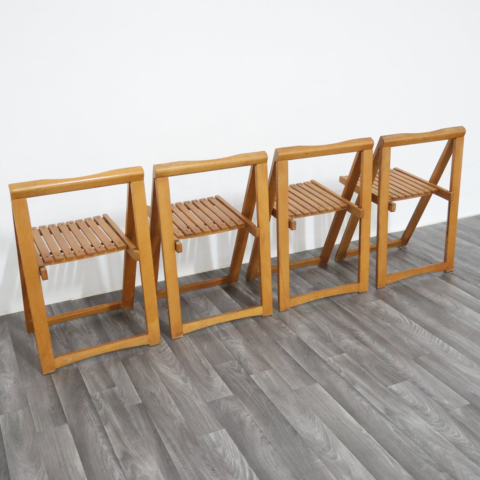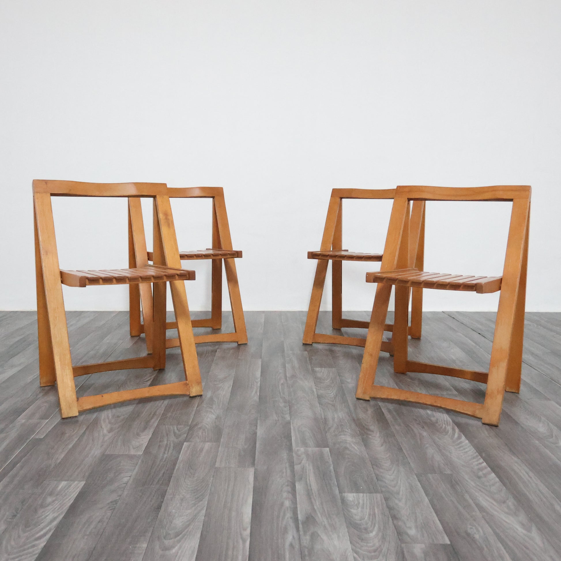 Iconico set di quattro sedie pieghevoli modello “Trieste”, disegnate da Aldo Jacober per Alberto Bazzani negli anni ’60.