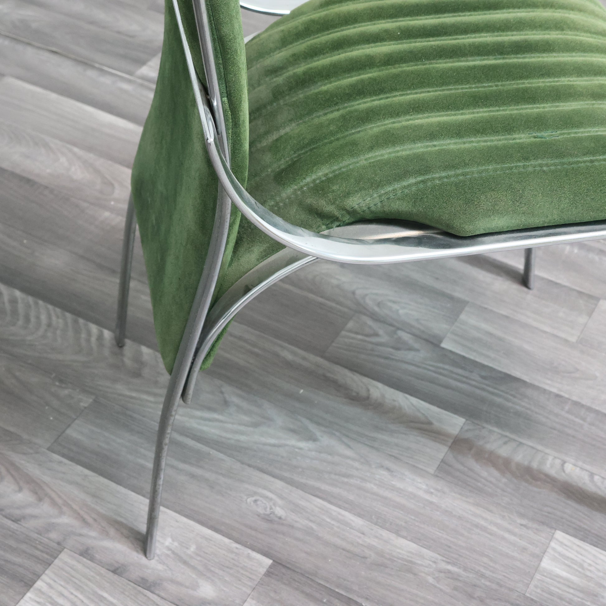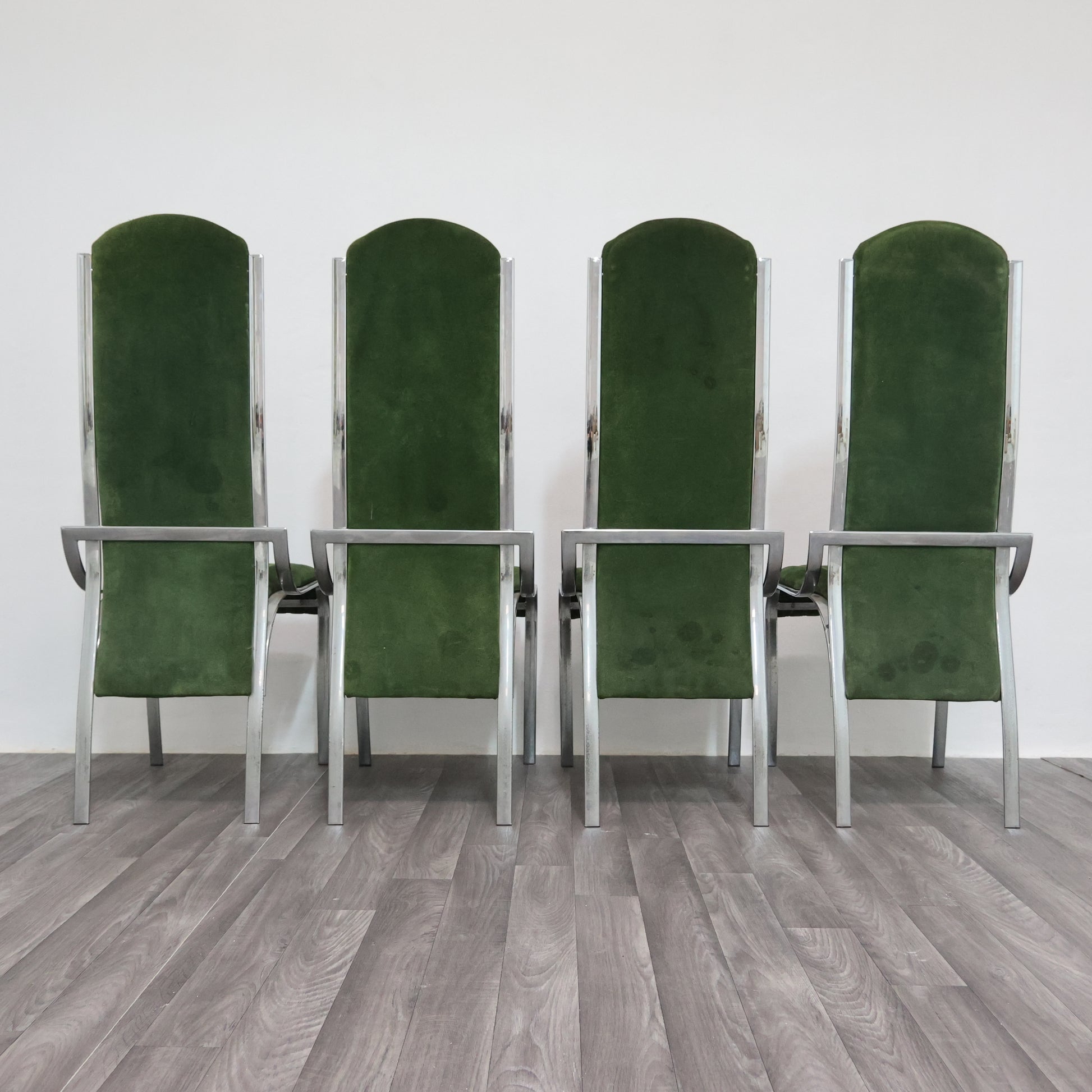 Set Da 4 Sedie Da Pranzo In Acciaio E Alcantara Anni ‘70
