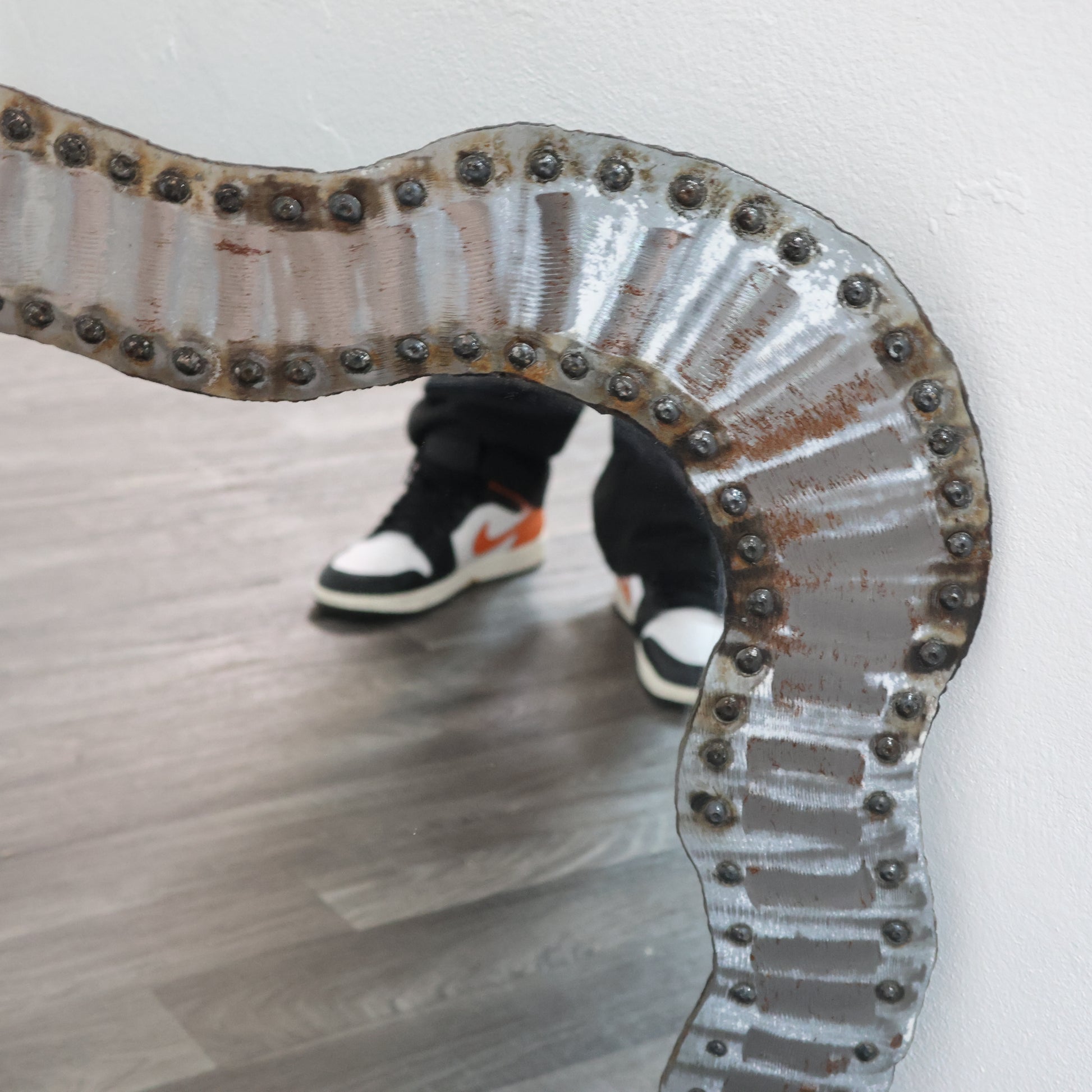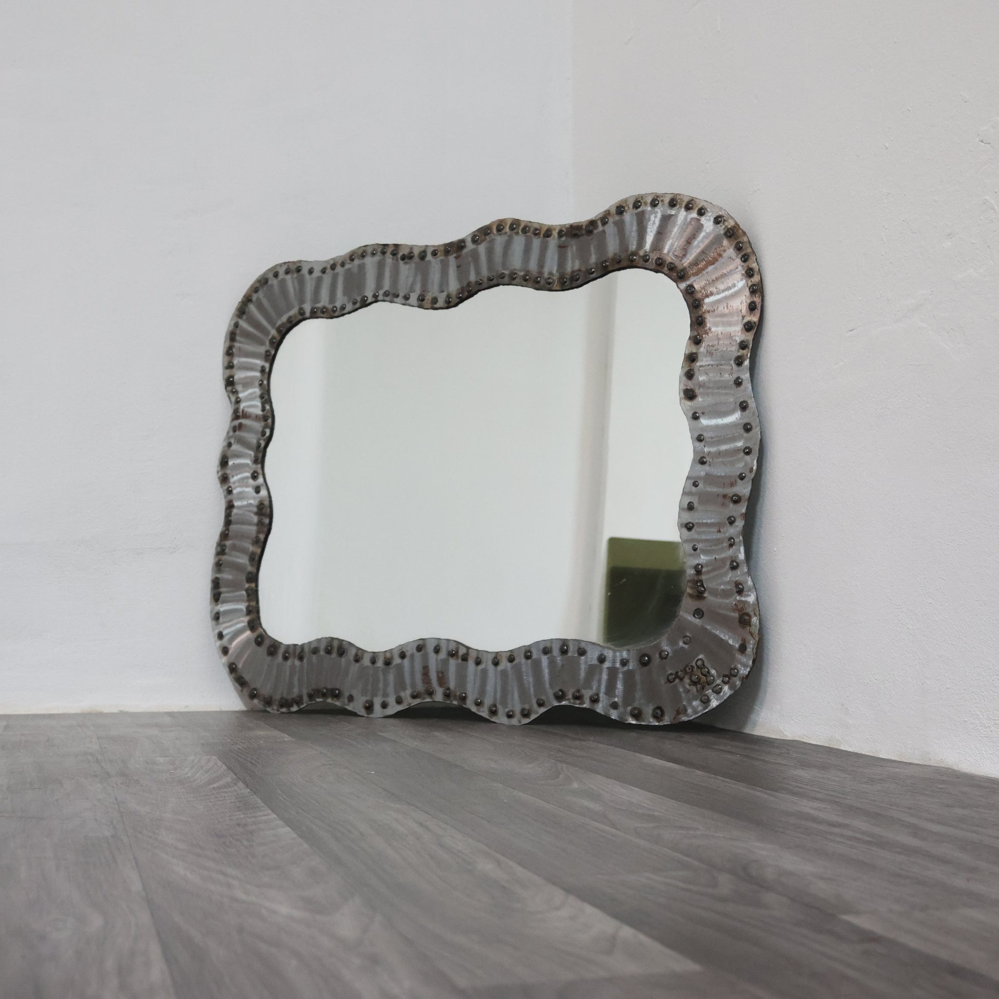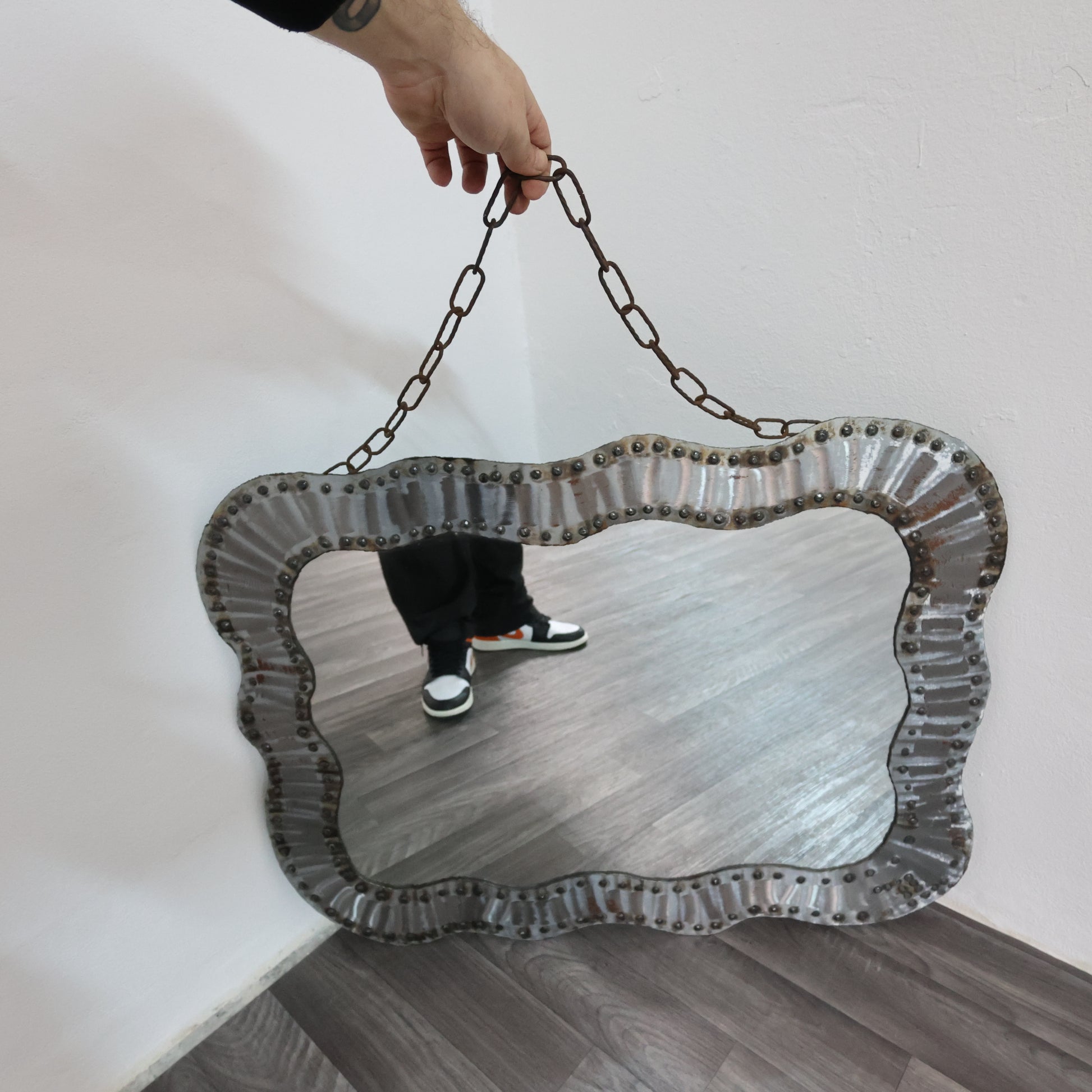 Specchio Da Parete Brutalist Borchiato In Metallo Anni 60 Design Modernariato