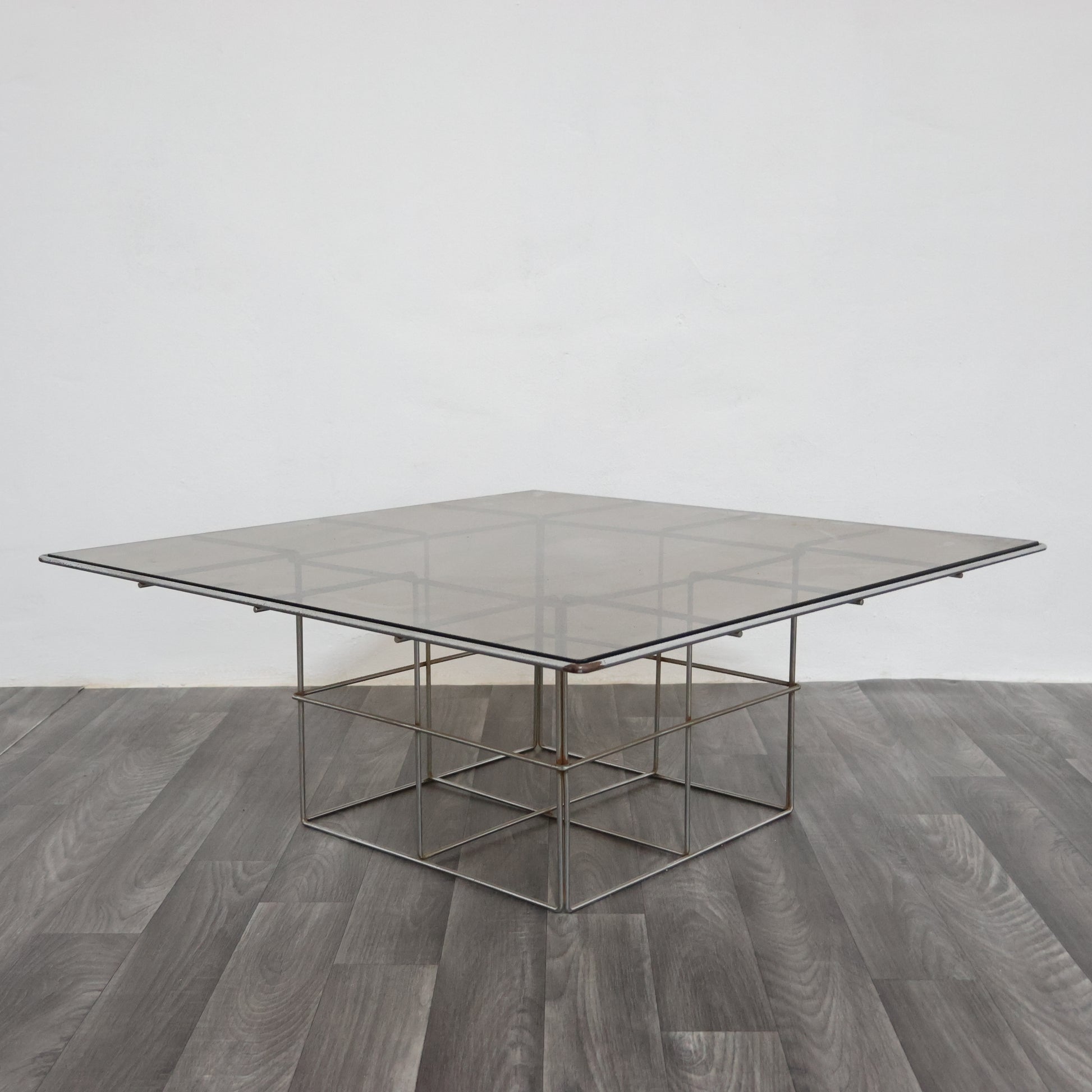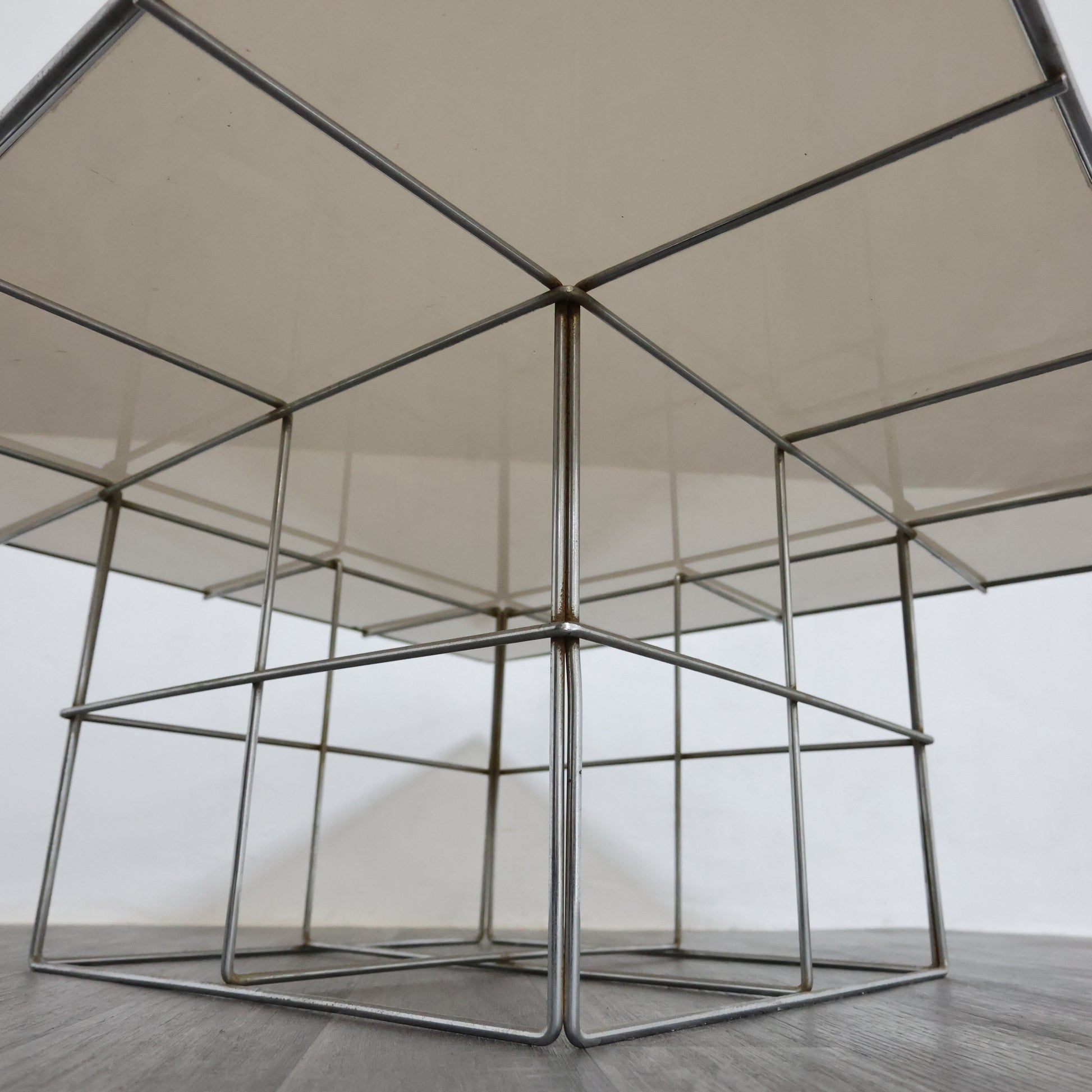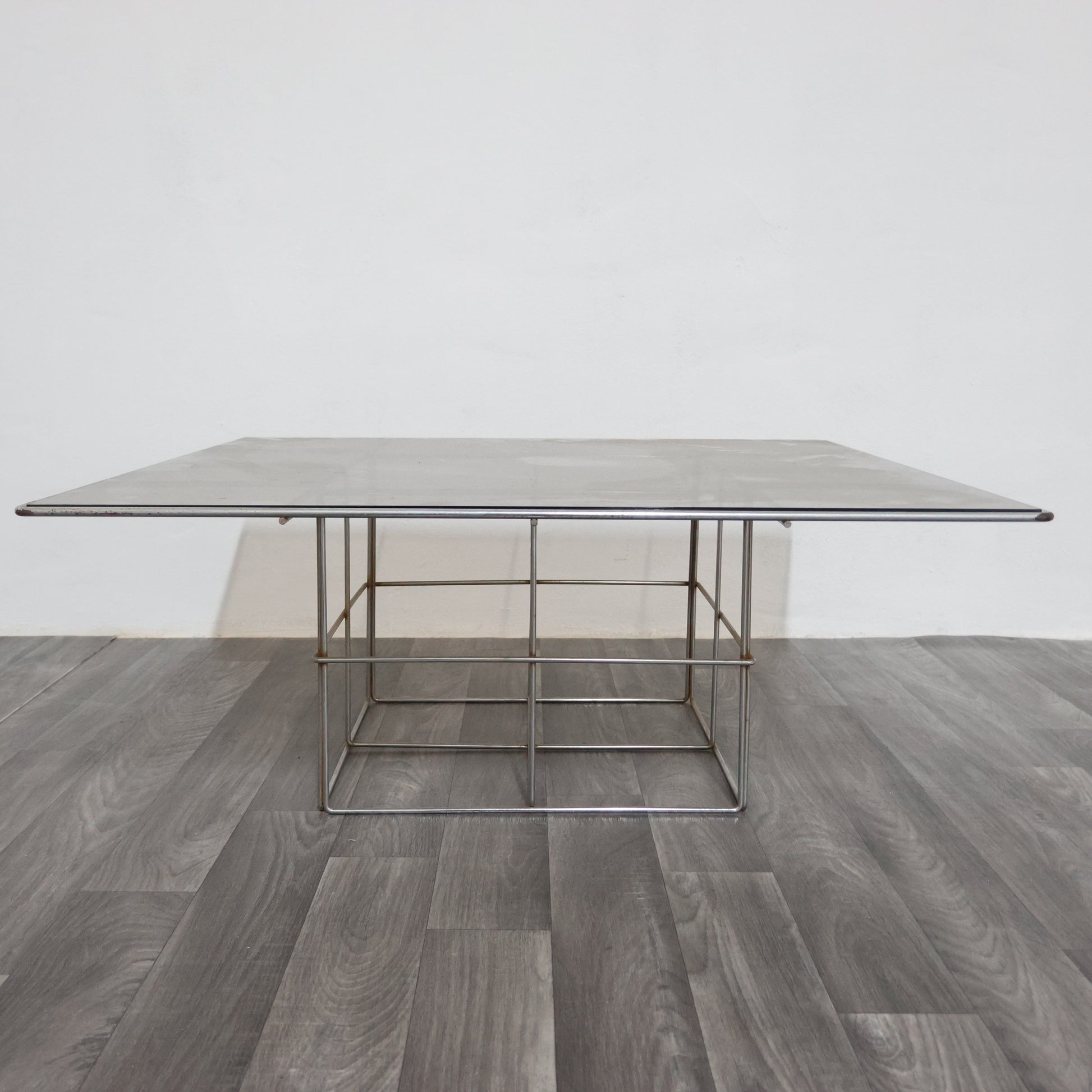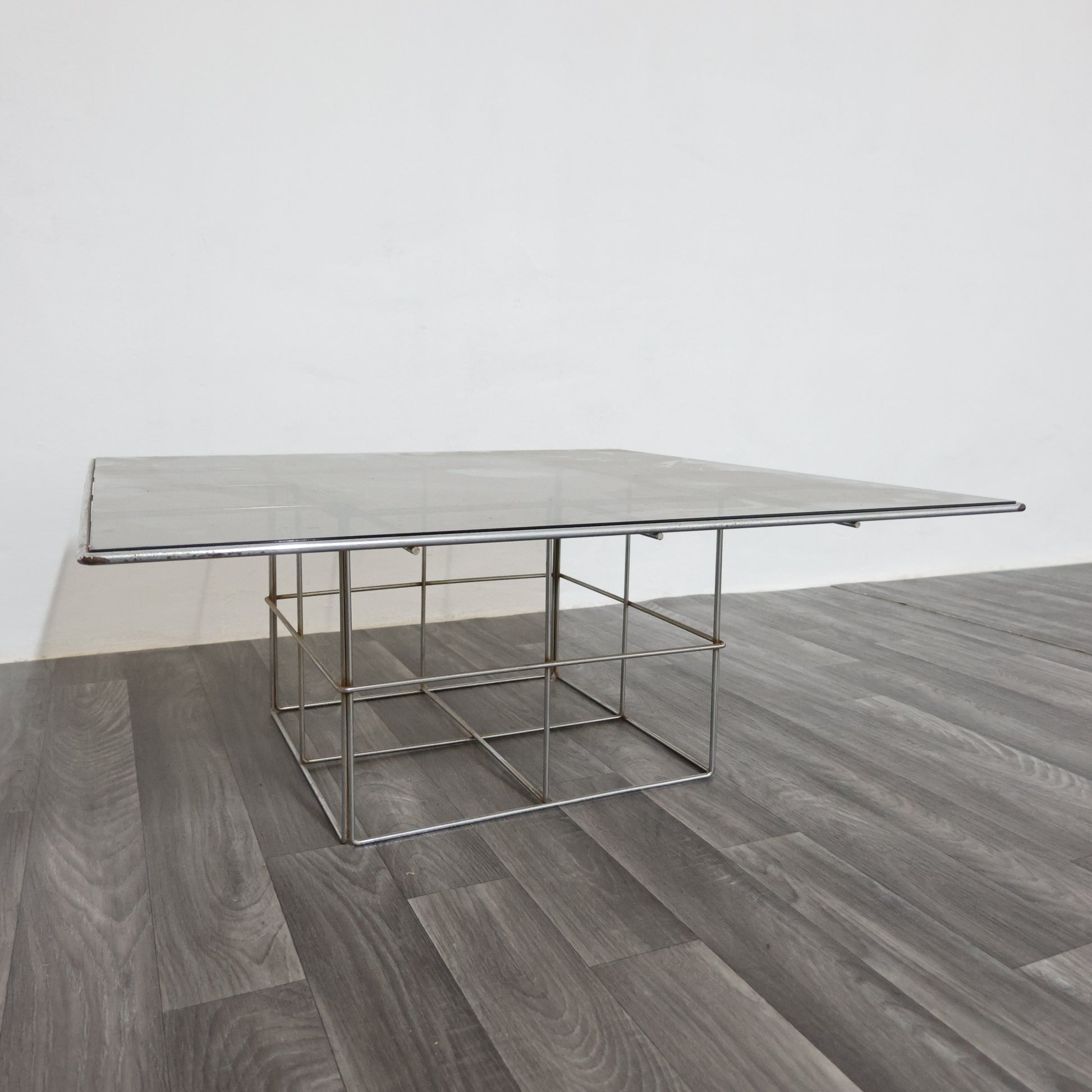 TAVOLINO DI DESIN SALOTTO STRUTTURA GRIGLIA IN ACCIAIO 1970’S
