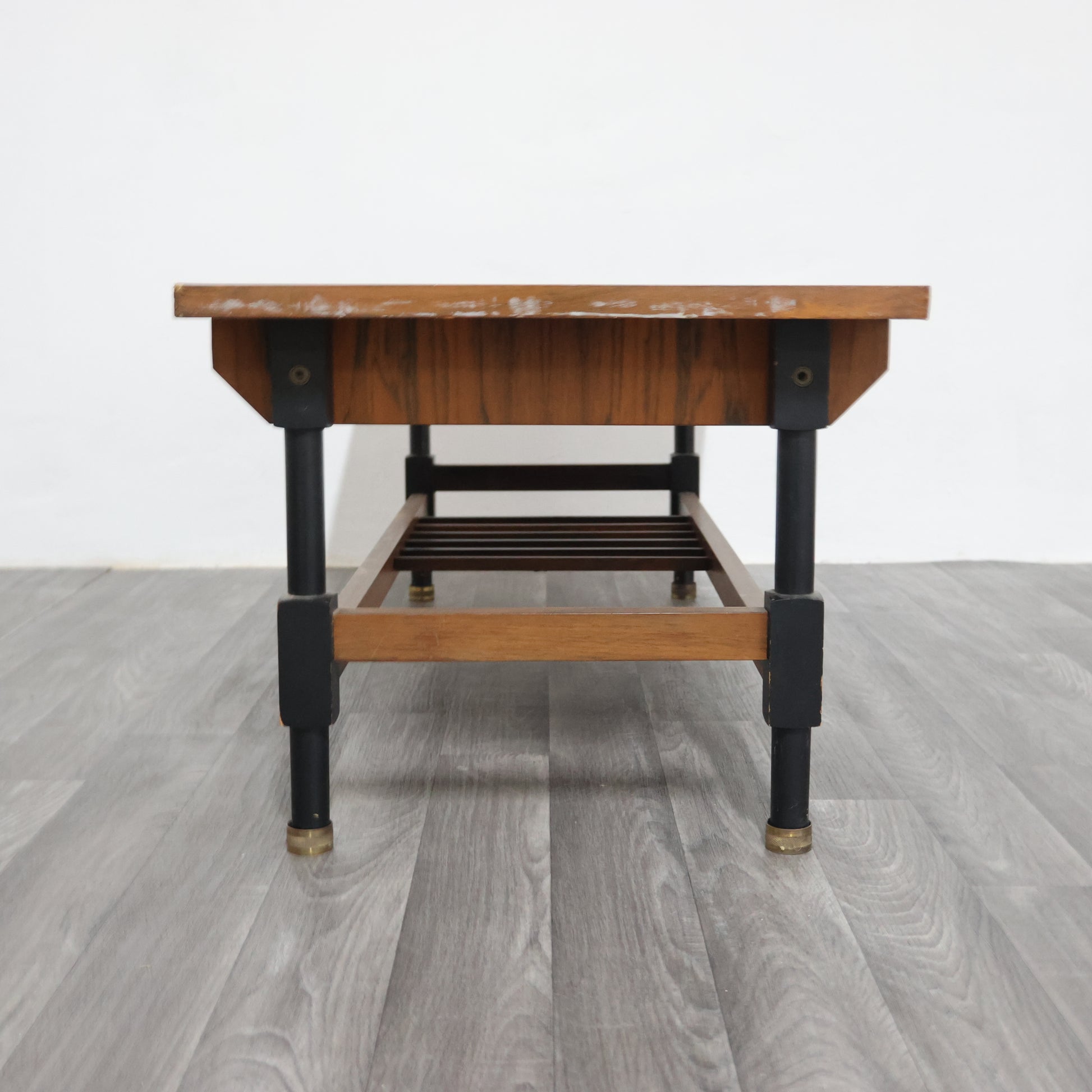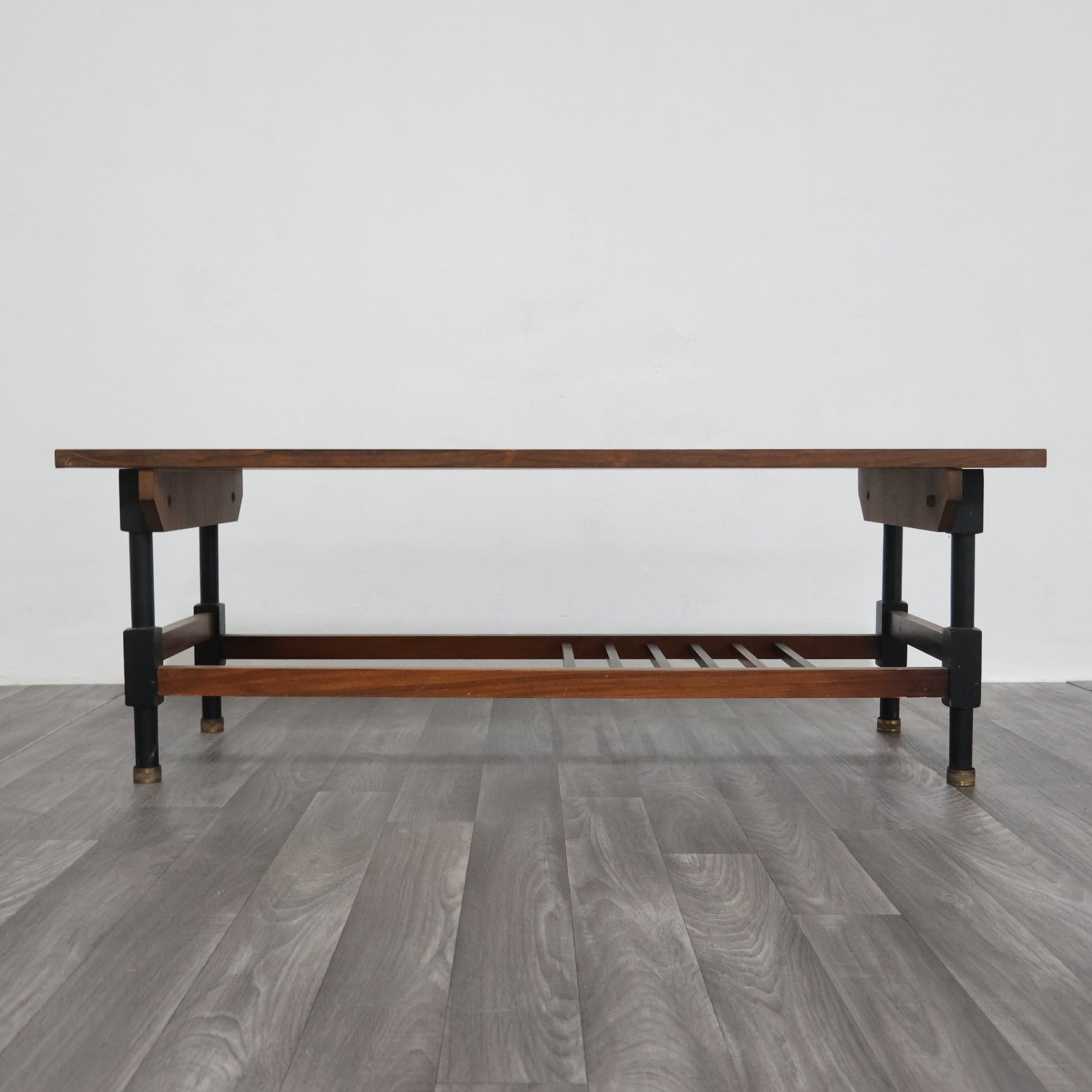 Meraviglioso tavolino da salotto in legno e metallo con piedini in ottone, prodotto negli anni 60, manifattura italiana.